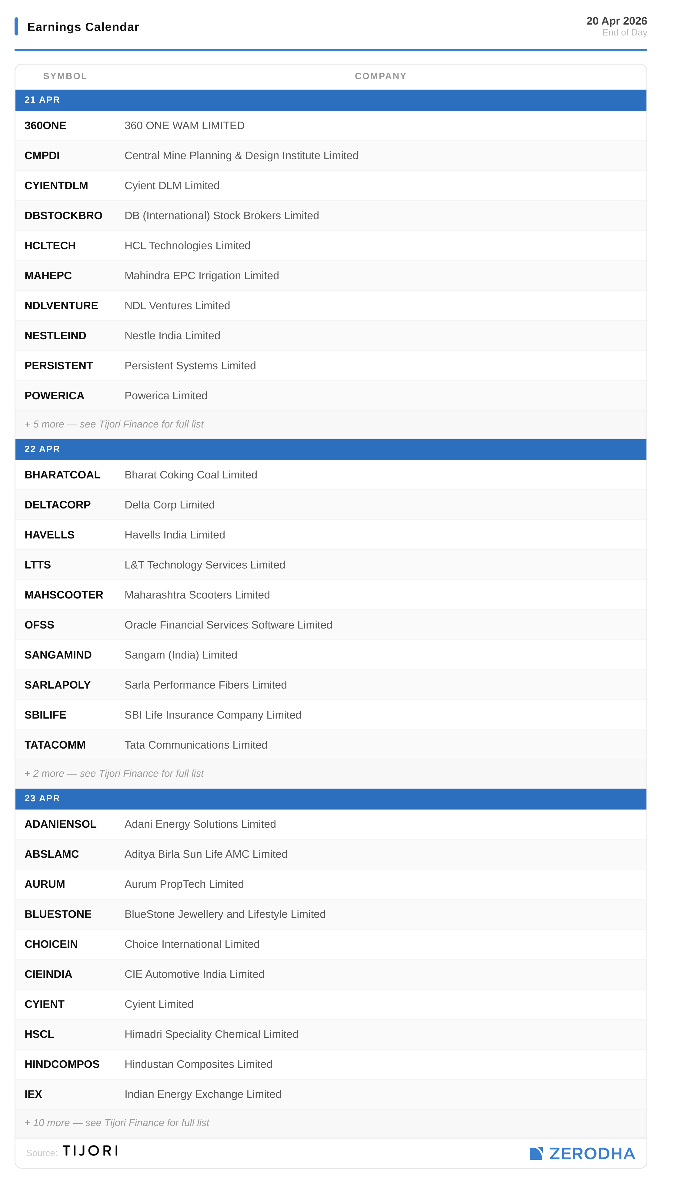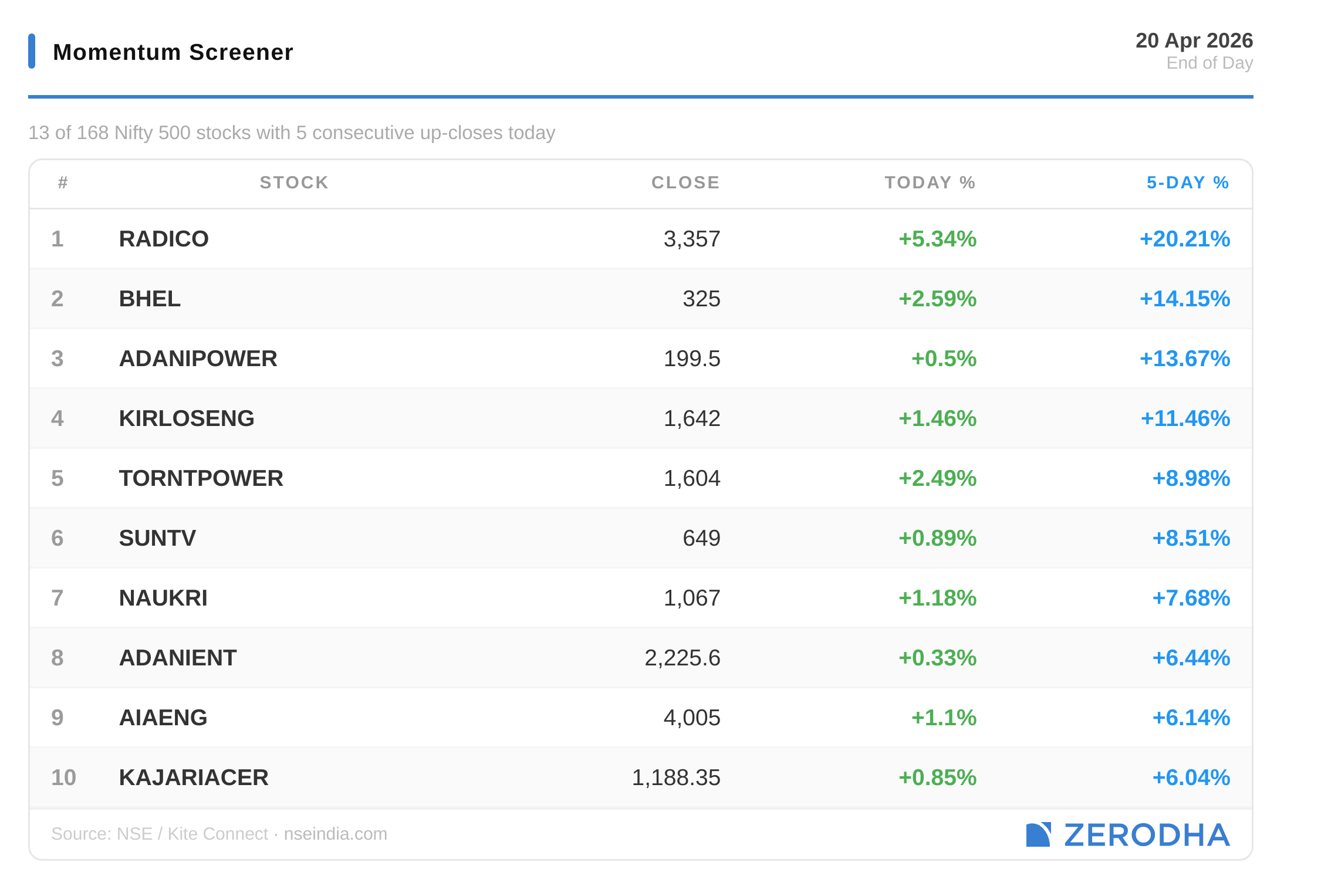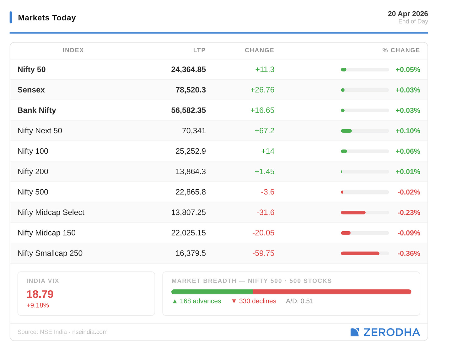 Published by Zerodha. Not investment advice. Data from NSE, BSE, MCX.