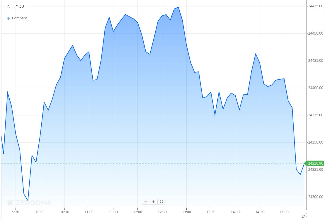 Momentum picked up through the late morning, with Nifty gradually moving higher to test the 24,450–24,470 zone around noon. However, it failed to hold gains and started drifting lower post 1 PM.