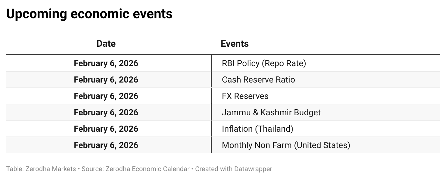 Looking ahead, markets are likely to remain sensitive to global risk appetite, ongoing Q3 earnings, tomorrow’s RBI policy, and further clarity on the India–U.S. trade deal announced last night.