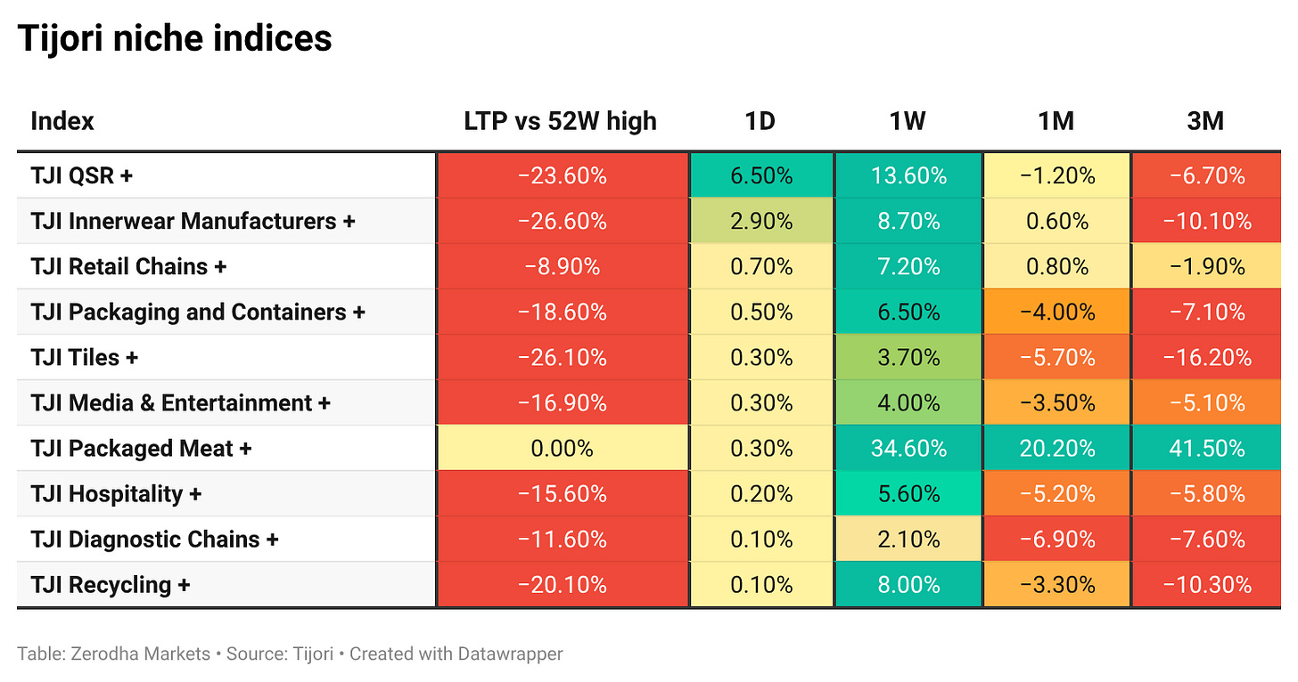 Tijori is an investment research platform that has constructed niche indices for various themes and sub-sectors. They help you understand the market performance of narrow slices of the market. You can also track the Promoter buying and other interesting stuff, like Capex activity by the companies in the Tijori App’s idea dashboard