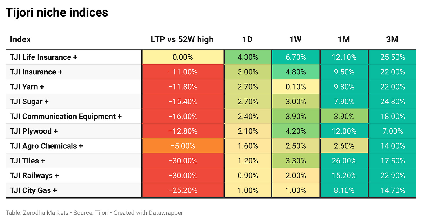 Tijori is an investment research platform, and they have constructed niche indices for various themes and sub-sectors. They help you understand the market performance of narrow slices of the market. You can also track the Promoter buying and other interesting stuff like Capex activity by the companies in the Tijori App’s idea dashboard