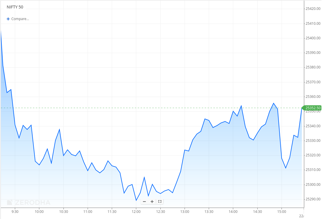 Nifty eases below 25,350 after recent run; Broader Indices outperform
