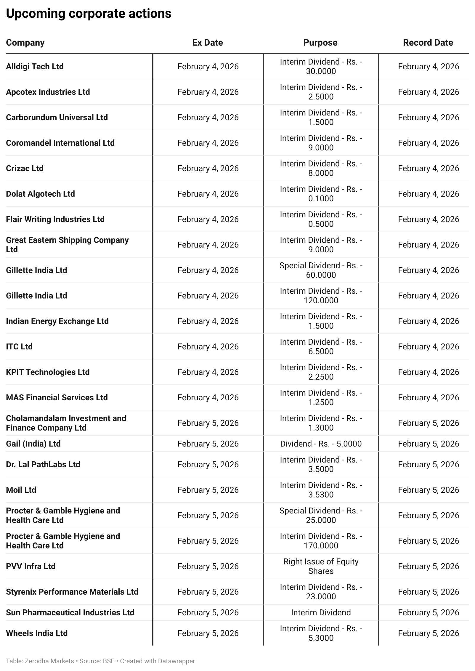 In the coming days, we have the following significant events, quarterly results, and corporate actions: