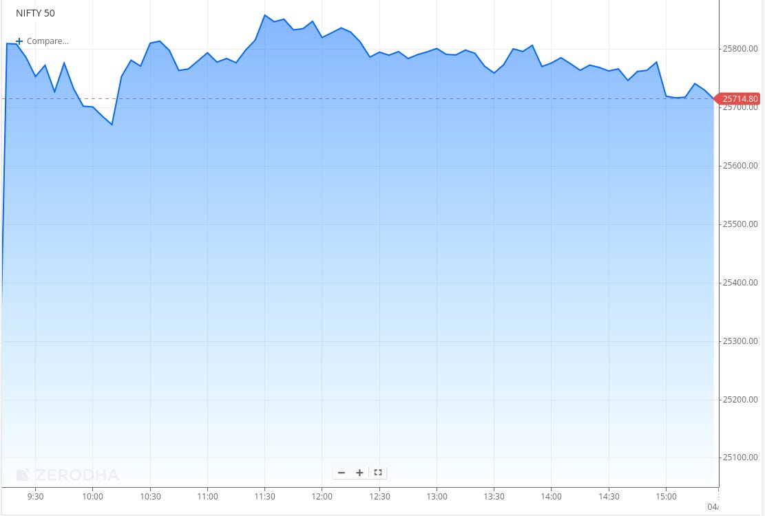 For the remainder of the session, the index largely remained range-bound between 25,700 and 25,850, as the initial surge gave way to consolidation. Nifty eventually closed at 25,727.55, marking a strong session underpinned by a positive structural shift in sentiment following the trade deal, even as intraday volatility cooled off after the early excitement.