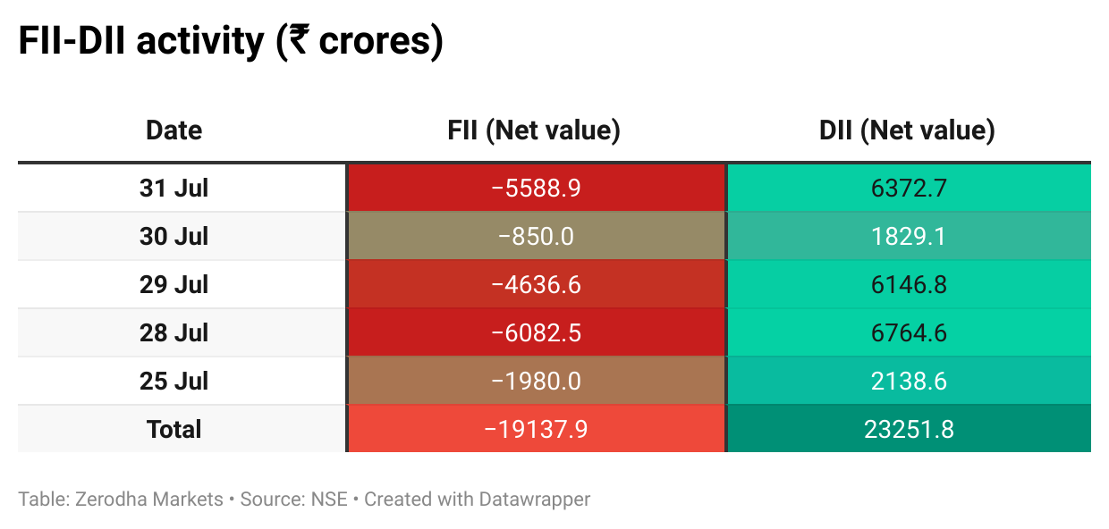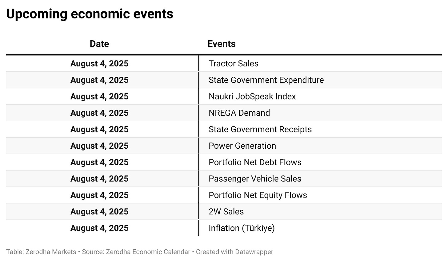 Sentiment remained cautious amid weak global cues, FII outflows, and subdued earnings reactions. Investors are eyeing upcoming results and India’s response to US tariffs. Trade developments may guide market direction in the near term.