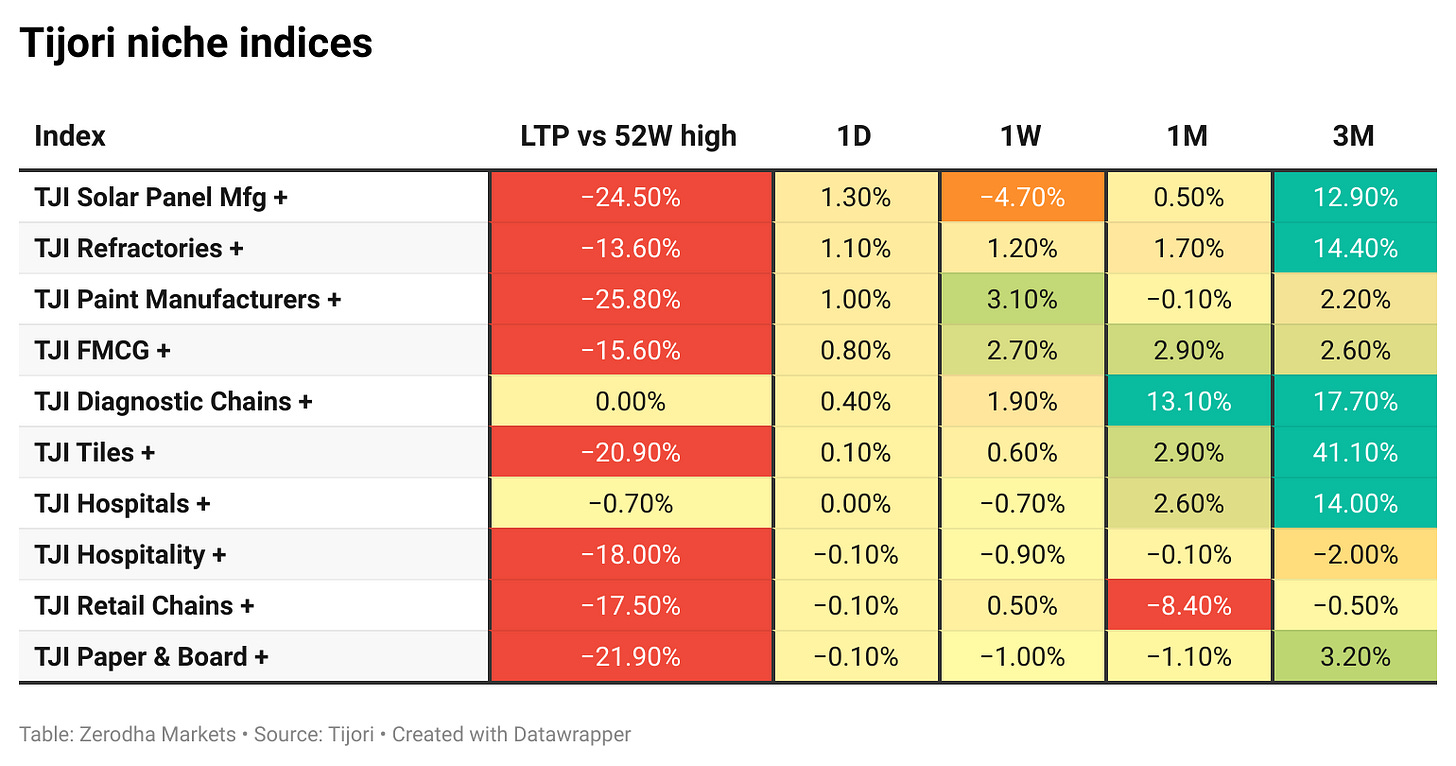 Tijori is an investment research platform, and they have constructed niche indices for various themes and sub-sectors. They help you understand the market performance of narrow slices of the market. You can also track the Promoter buying and other interesting stuff like Capex activity by the companies in the Tijori App’s idea dashboard