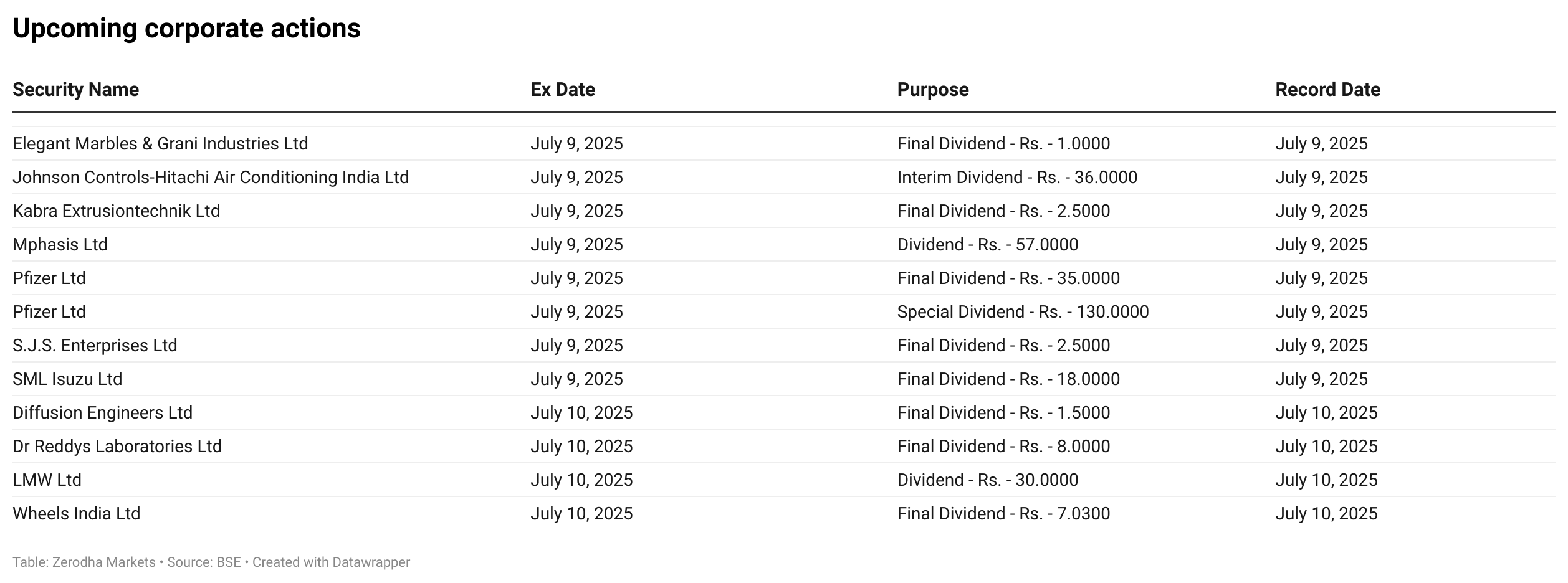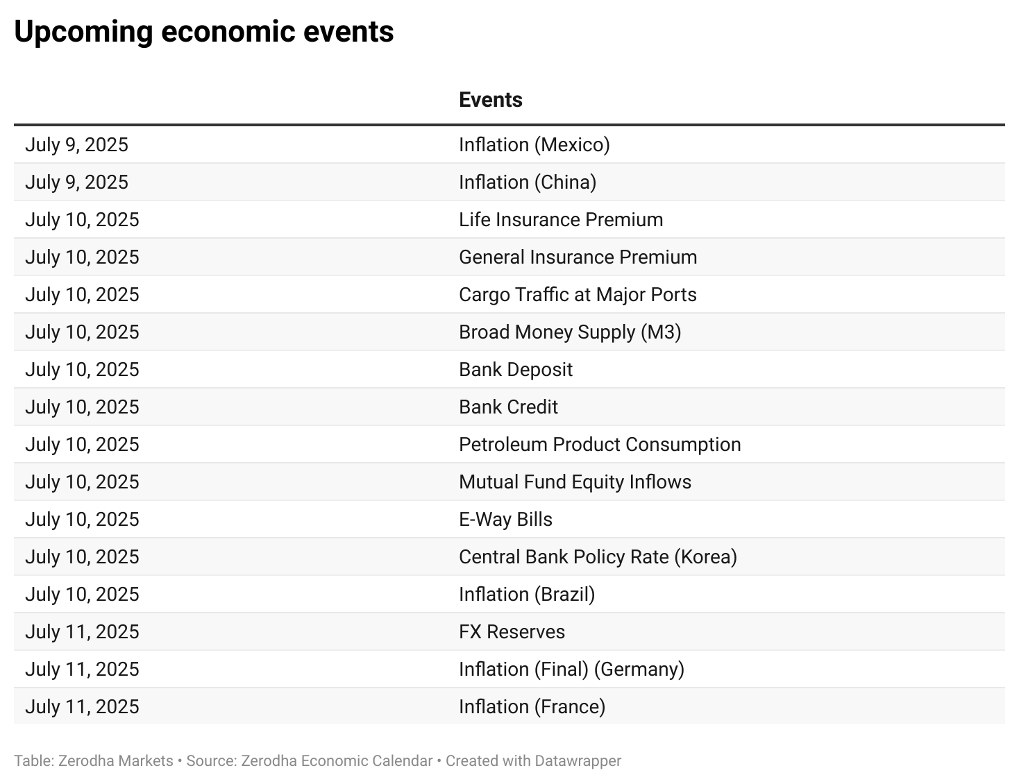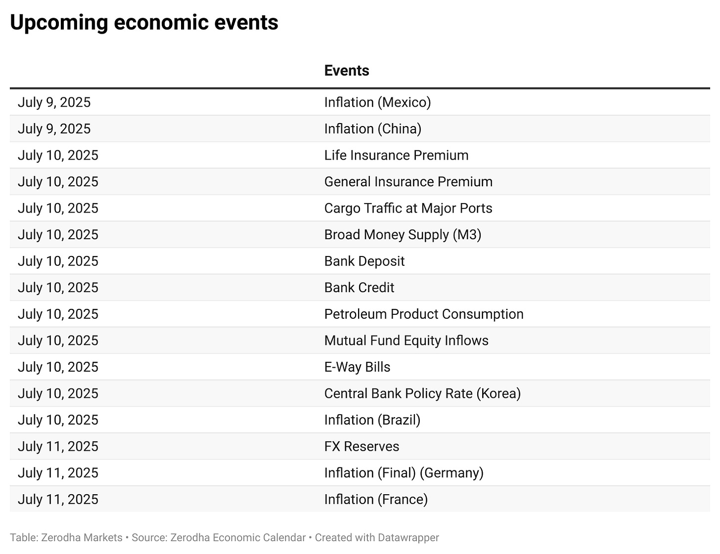 Markets mirrored gains in Asian peers while tracking updates on the India–US trade deal, with the US extending the tariff suspension deadline to August 1. Investor sentiment remained cautious despite mildly encouraging signals. Attention now turns to earnings and upcoming macro data.