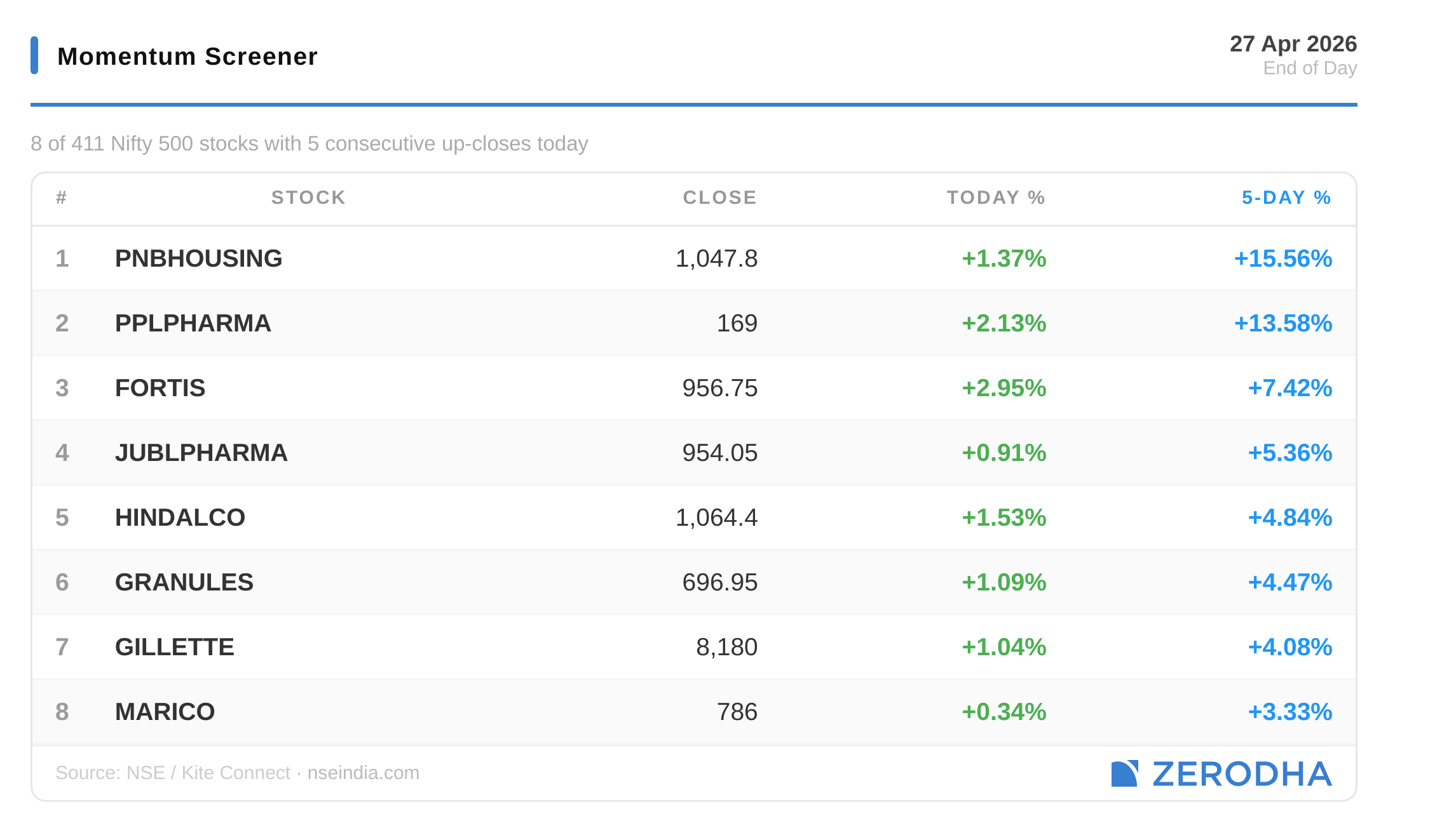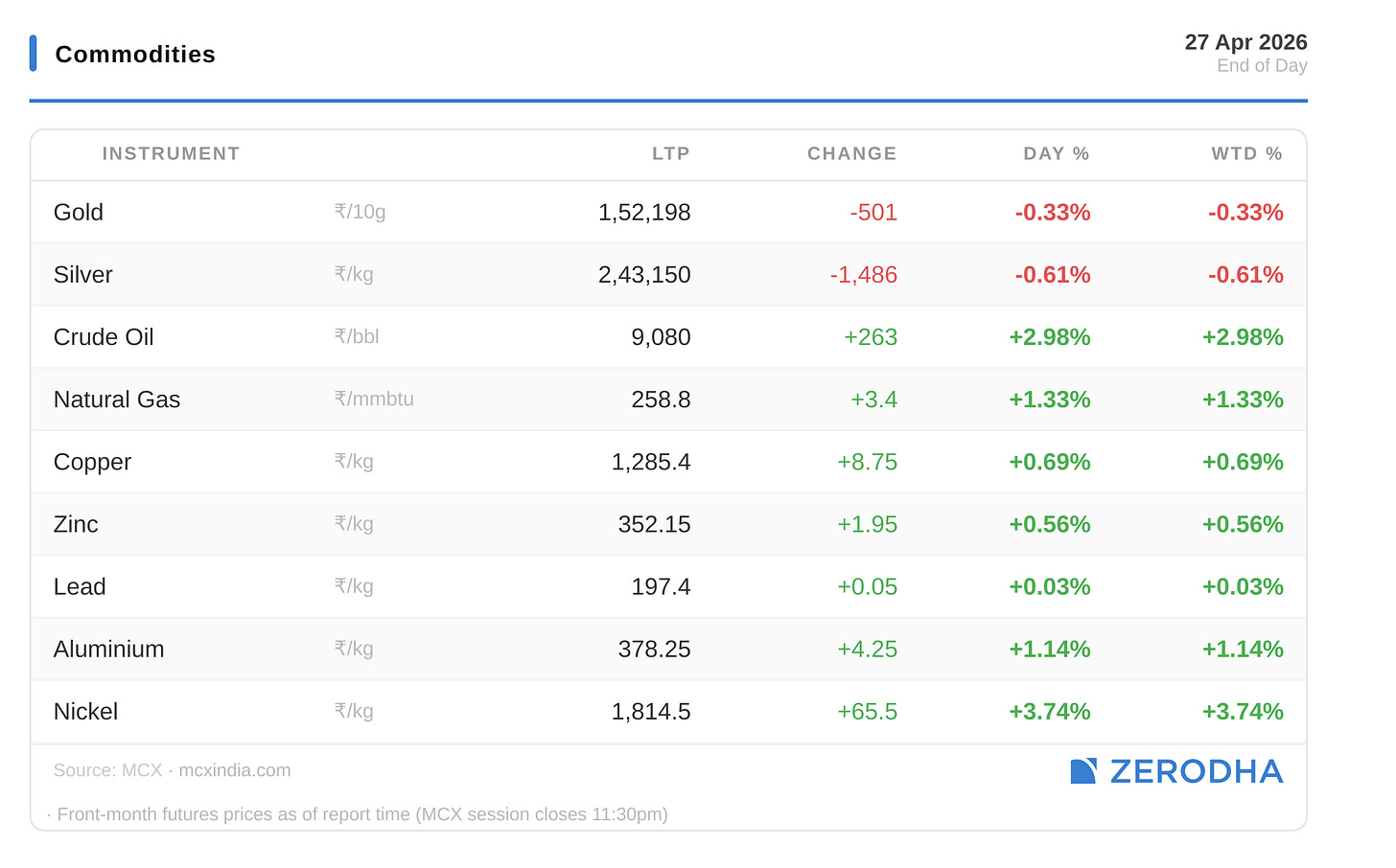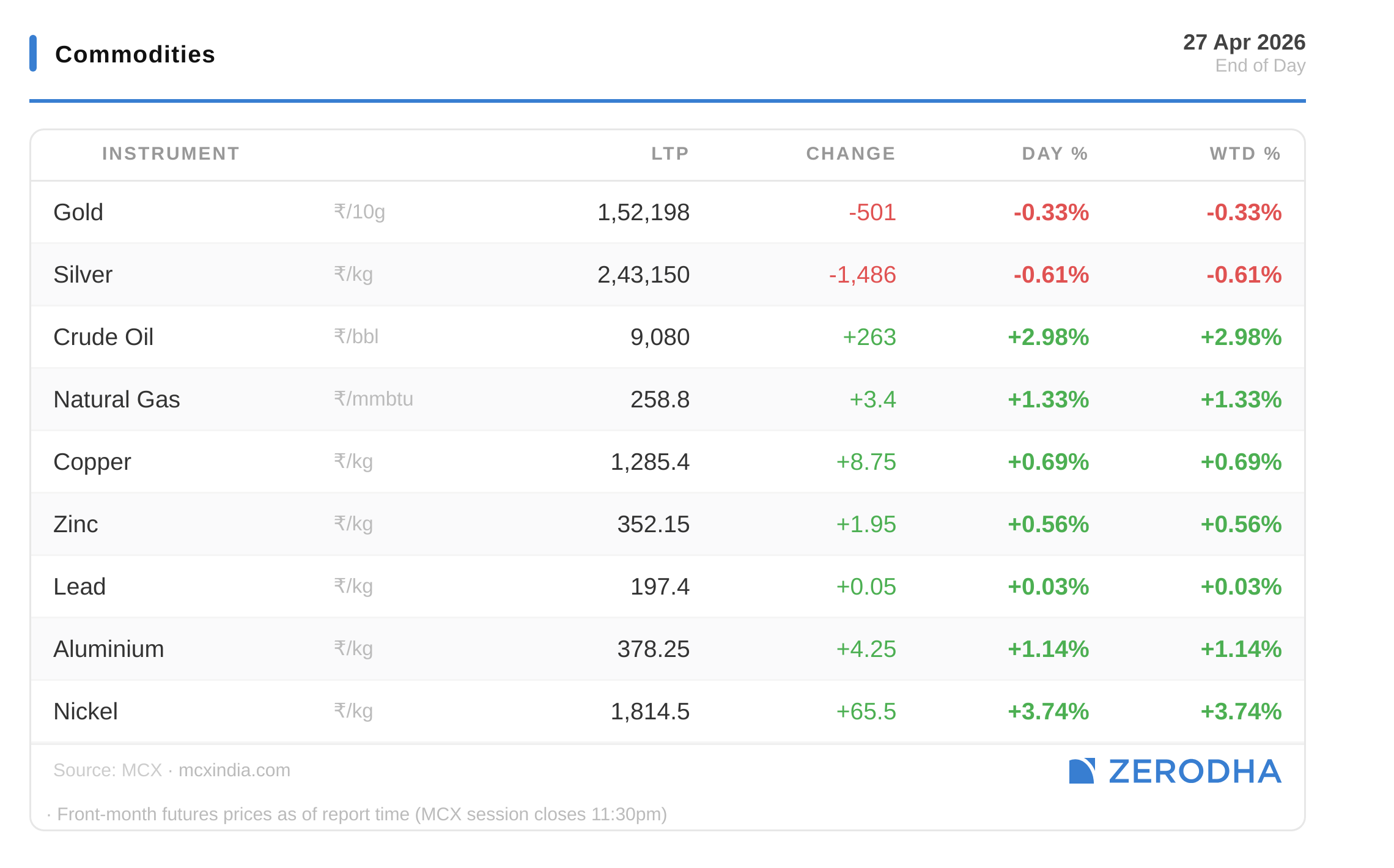 Published by Zerodha. Not investment advice. Data from NSE, BSE, MCX.