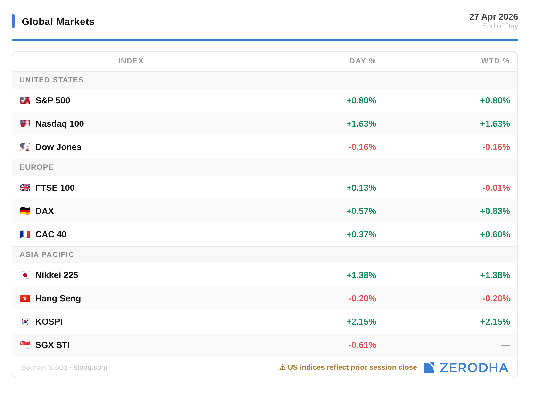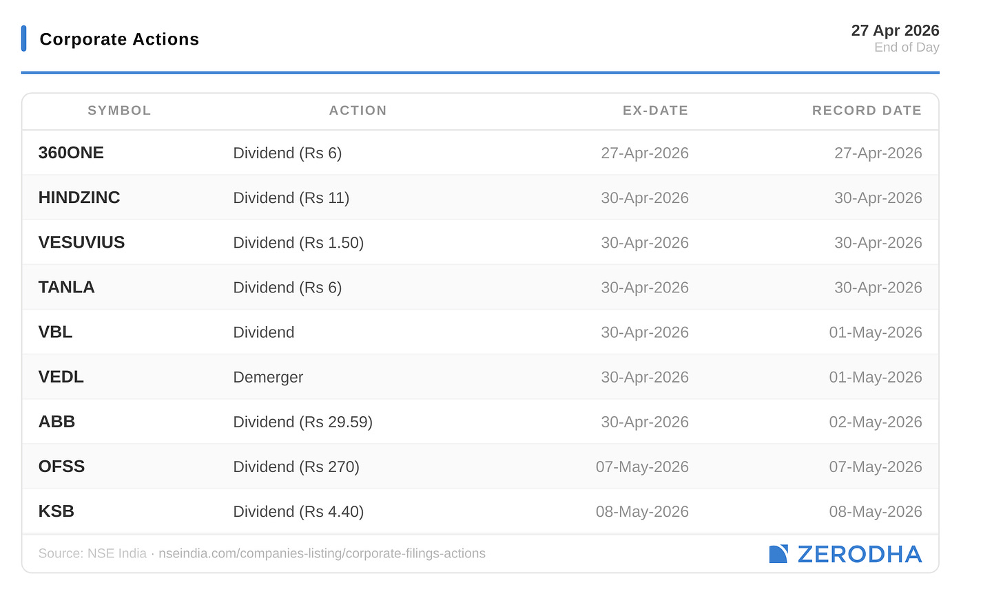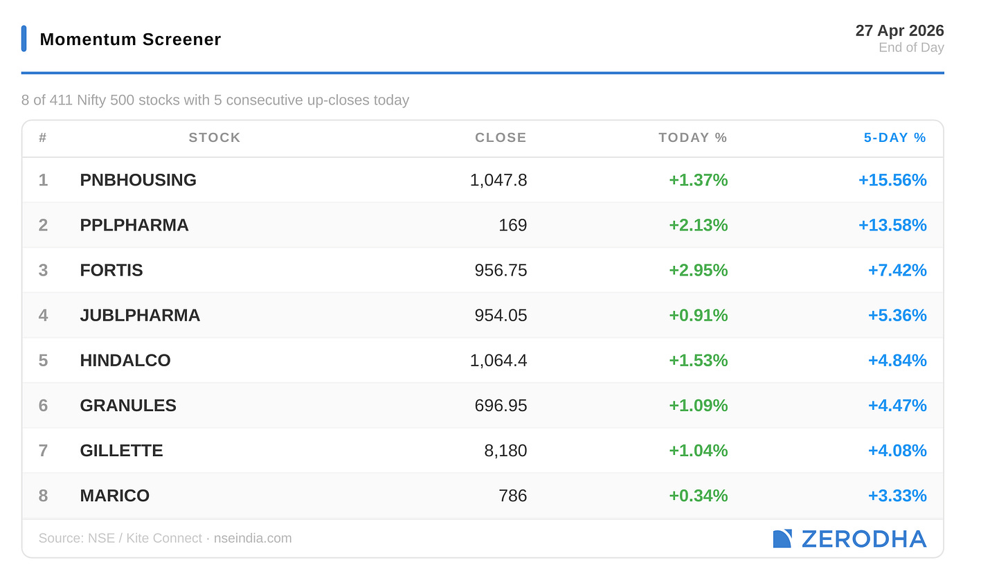 Published by Zerodha. Not investment advice. Data from NSE, BSE, MCX.