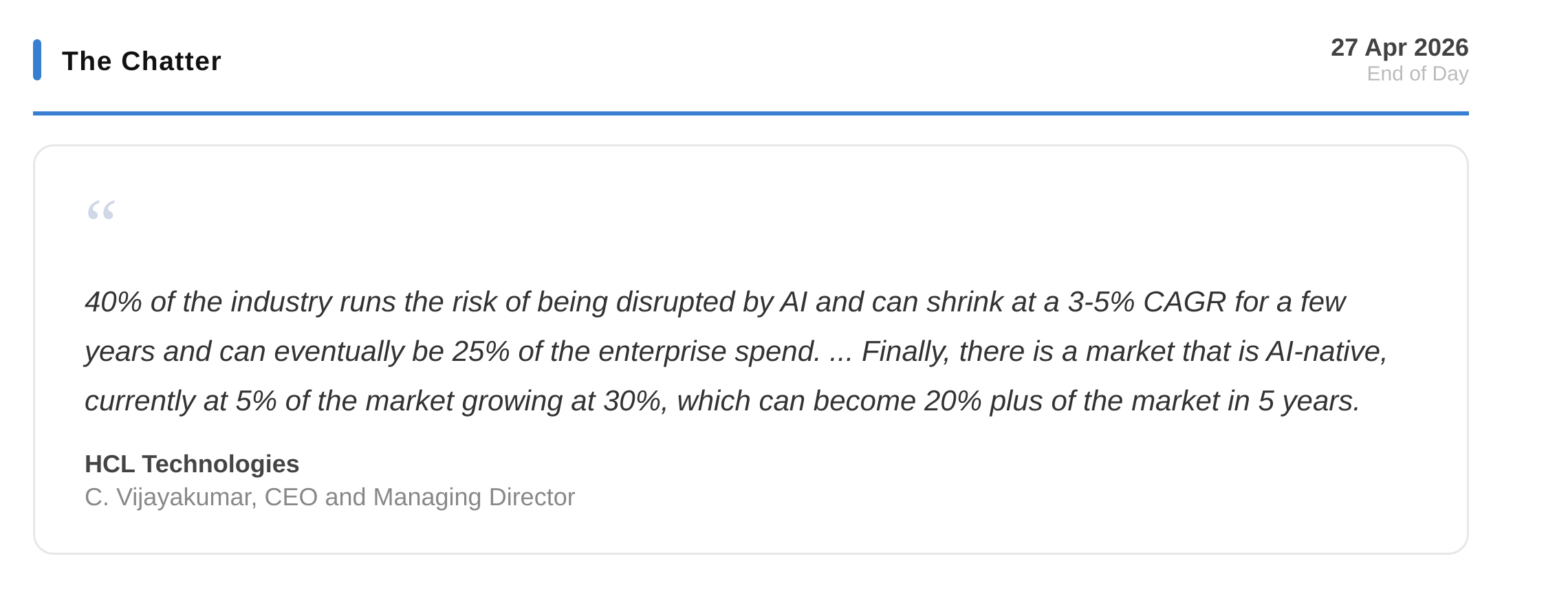In this section, we highlight interesting comments from the management of major companies and policymakers in the Indian and Global Economies.