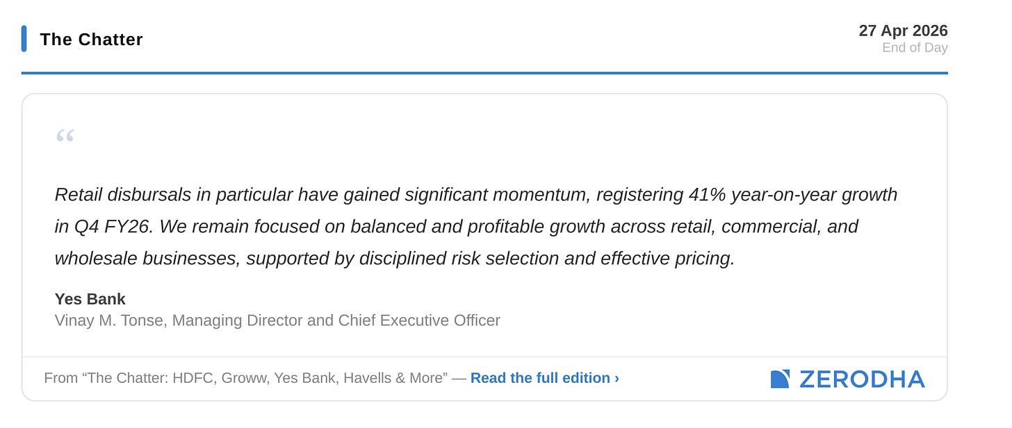 IDFC First Bank reported Q4FY26 profit of ₹319 crore, up 5% YoY, while interest income rose 12% to ₹10,553 crore, supporting steady growth. Dive deeper
