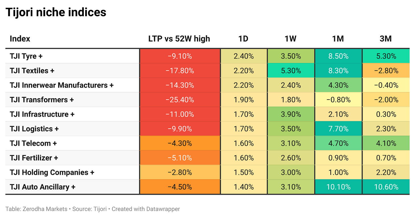 Tijori is an investment research platform, and they have constructed niche indices for various themes and sub-sectors. They help you understand the market performance of narrow slices of the market. You can also track the Promoter buying and other interesting stuff like Capex activity by the companies in the Tijori App’s idea dashboard
