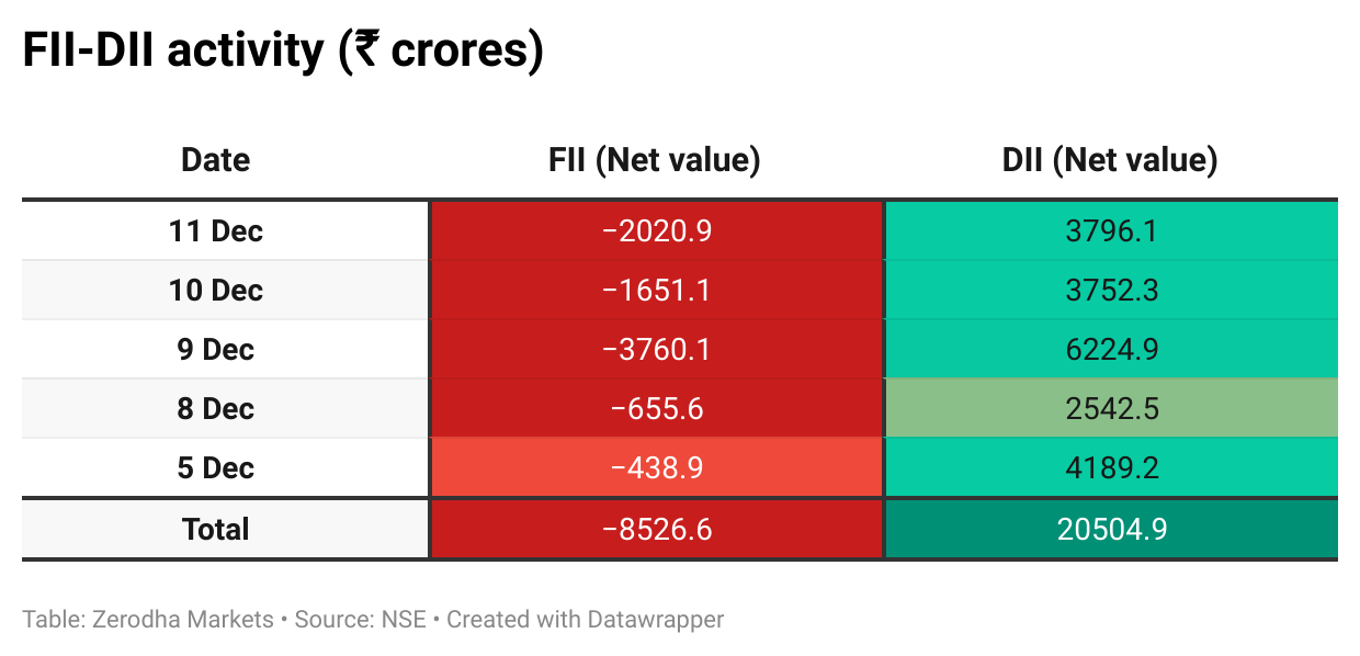 Here’s the trend of FII-DII activity from the last 5 days: