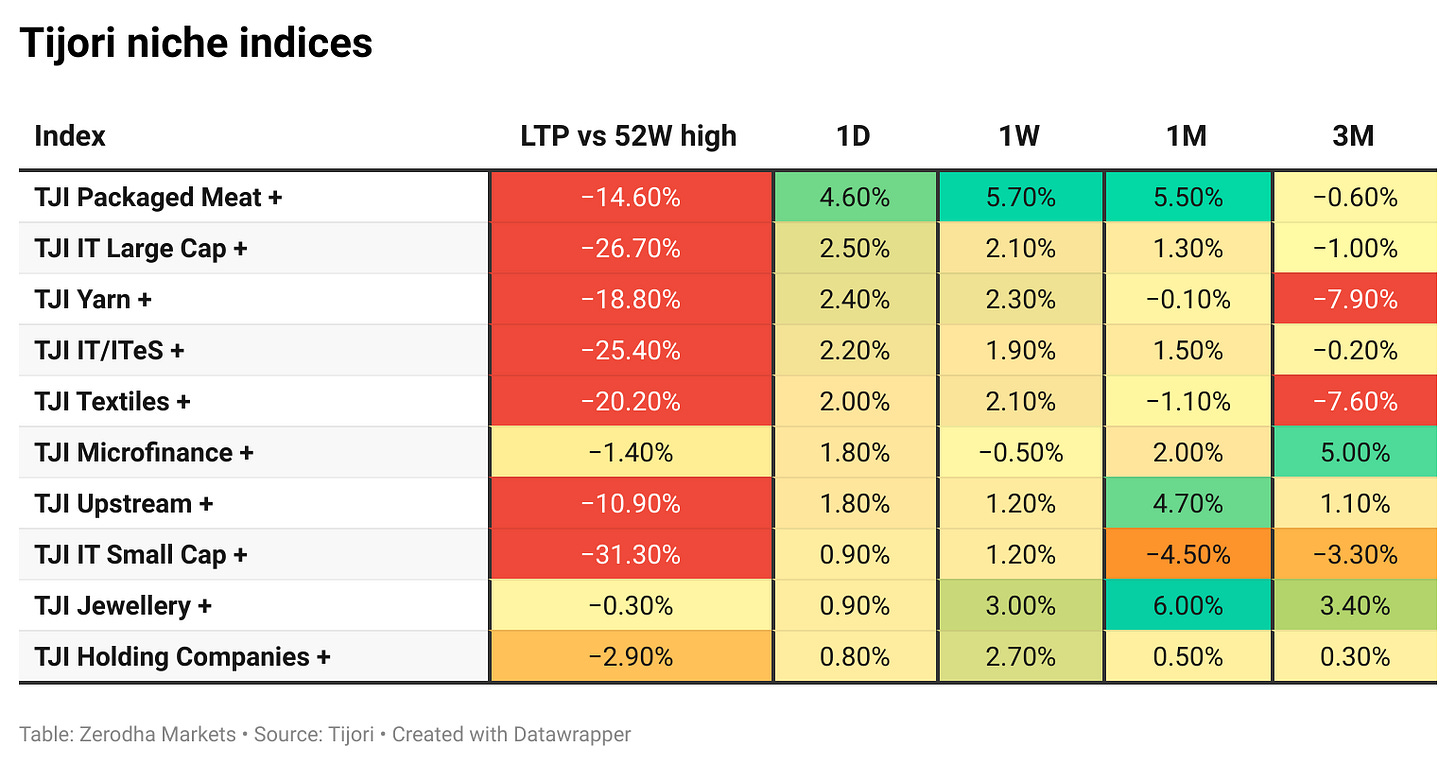 Tijori is an investment research platform, and they have constructed niche indices for various themes and sub-sectors. They help you understand the market performance of narrow slices of the market. You can also track the Promoter buying and other interesting stuff, like Capex activity by the companies in the Tijori App’s idea dashboard