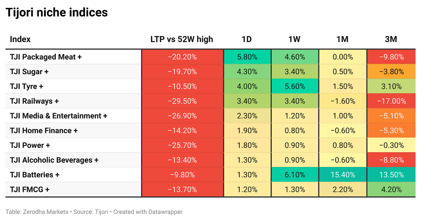 Tijori is an investment research platform, and they have constructed niche indices for various themes and sub-sectors. They help you understand the market performance of narrow slices of the market. You can also track the Promoter buying and other interesting stuff like Capex activity by the companies in the Tijori App’s idea dashboard