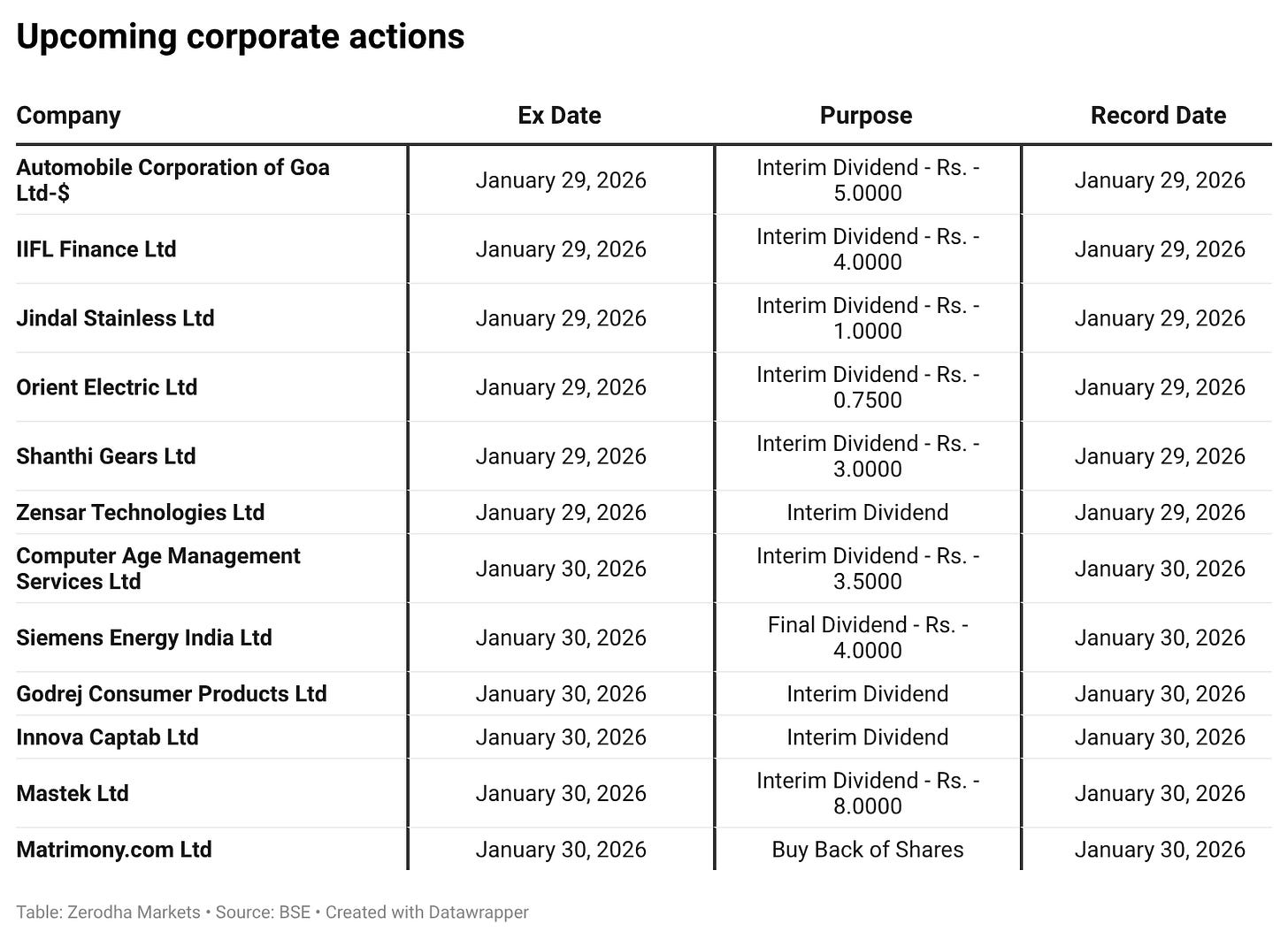 In the coming days, we have the following significant events, quarterly results, and corporate actions: