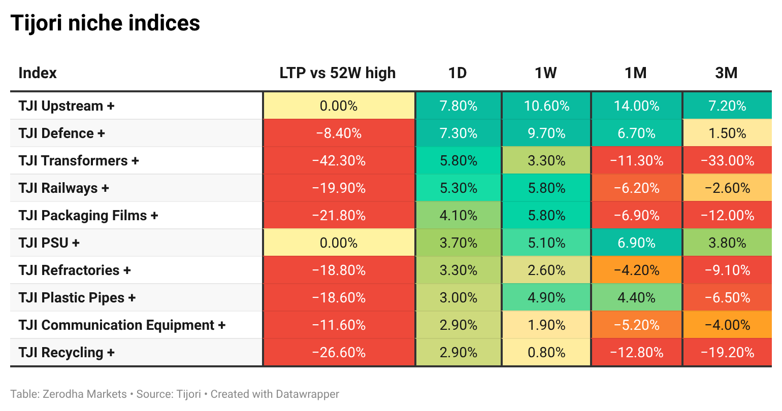 Tijori is an investment research platform that has constructed niche indices for various themes and sub-sectors. They help you understand the market performance of narrow slices of the market. You can also track the Promoter buying and other interesting stuff, like Capex activity by the companies in the Tijori App’s idea dashboard