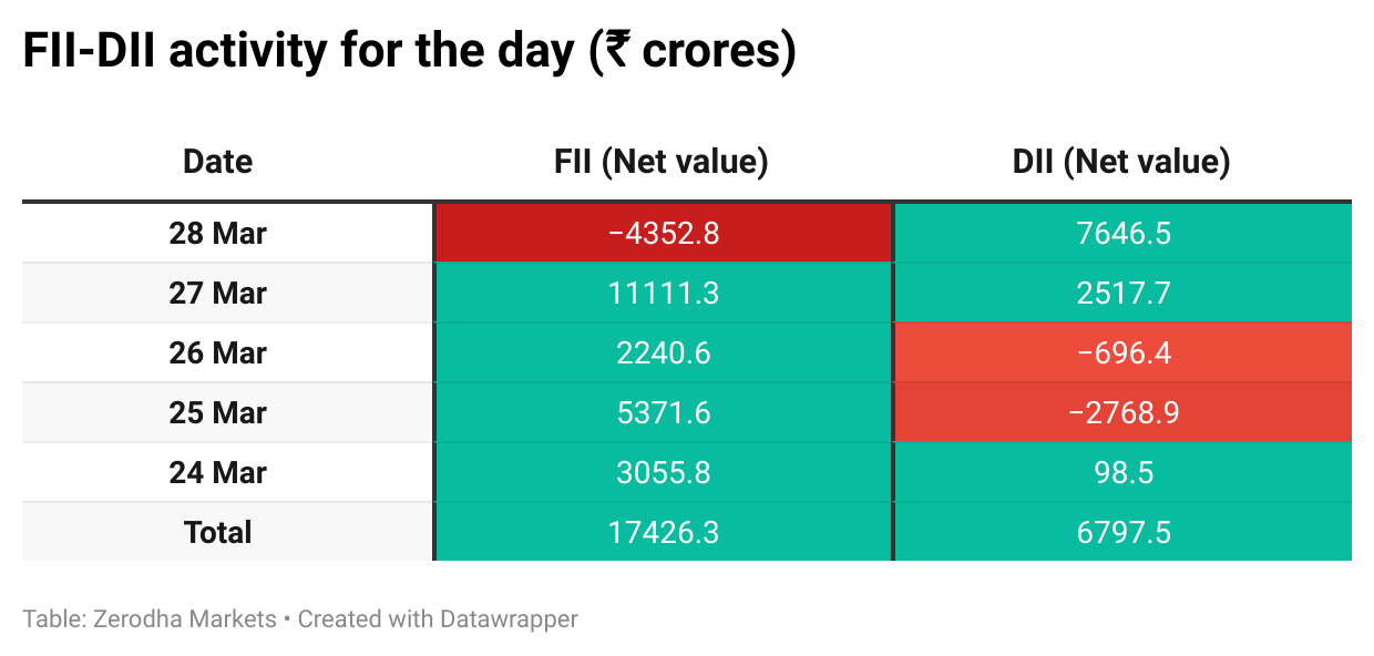 Global investor sentiment remained cautious ahead of the U.S. reciprocal tariff decision expected from President Trump on April 2nd. Despite a strong performance in March, concerns about global cues and continued foreign fund outflows are weighing on the markets.