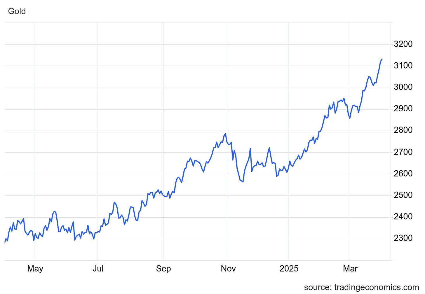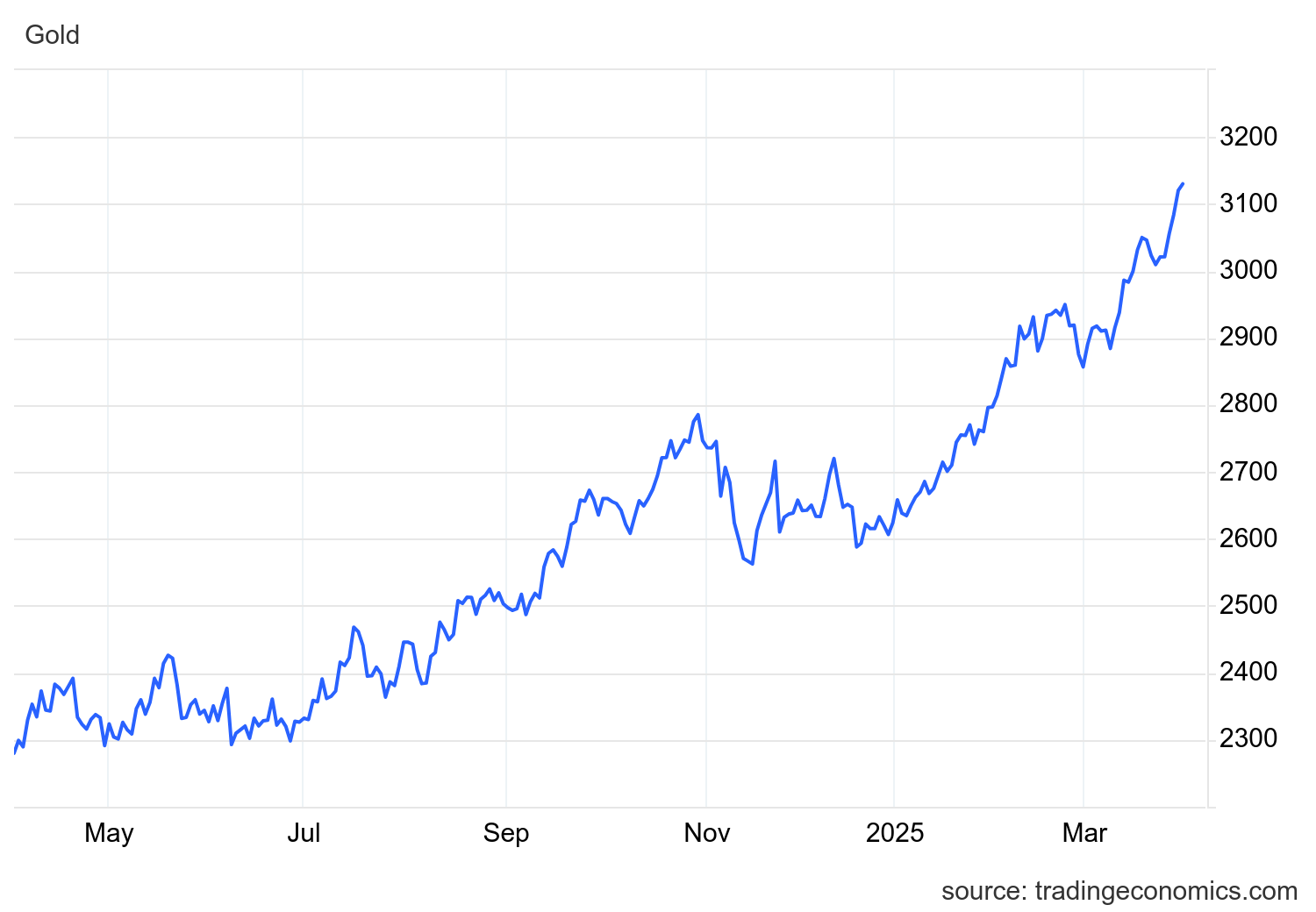 Gold hit a record high of $3,130 per ounce as investors sought safe-haven assets ahead of President Trump's tariff roll-out, raising concerns of a global trade war. The rally was also fueled by rate cut bets, central bank purchases, and demand for ETFs. Dive deeper