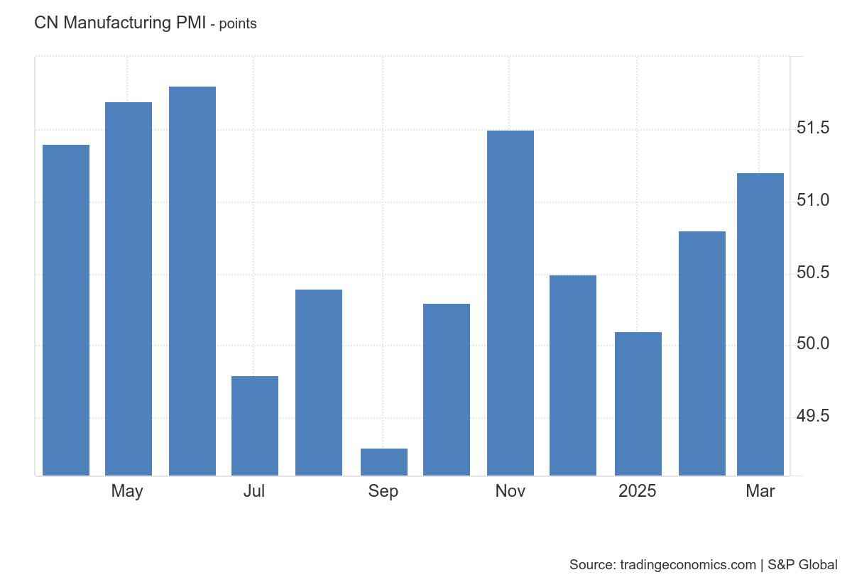 The Caixin China Manufacturing PMI rose to 51.2 in March 2025, driven by higher output and foreign sales. Employment increased marginally, but business confidence weakened due to global trade uncertainties. Input prices fell, leading to a drop in output prices for the fourth month. Dive deeper