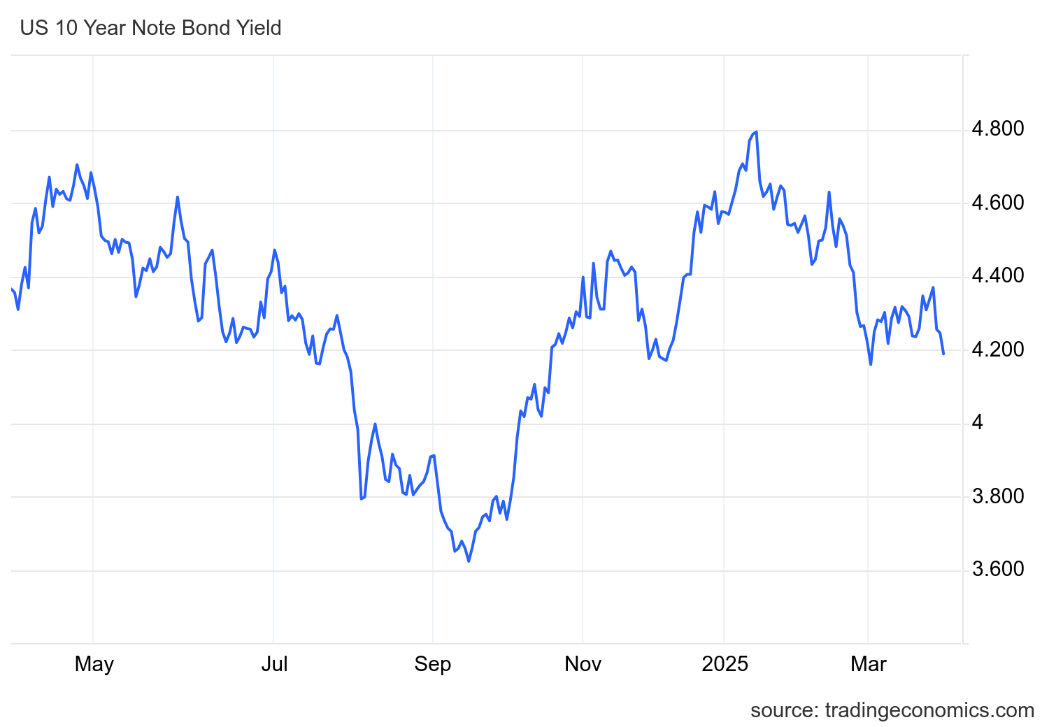 The US 10-year Treasury yield remained around 4.2% due to concerns over escalating trade tensions, increasing demand for safe-haven assets. The New York Fed President indicated that interest rates may stay steady for now to assess incoming data. Dive deeper