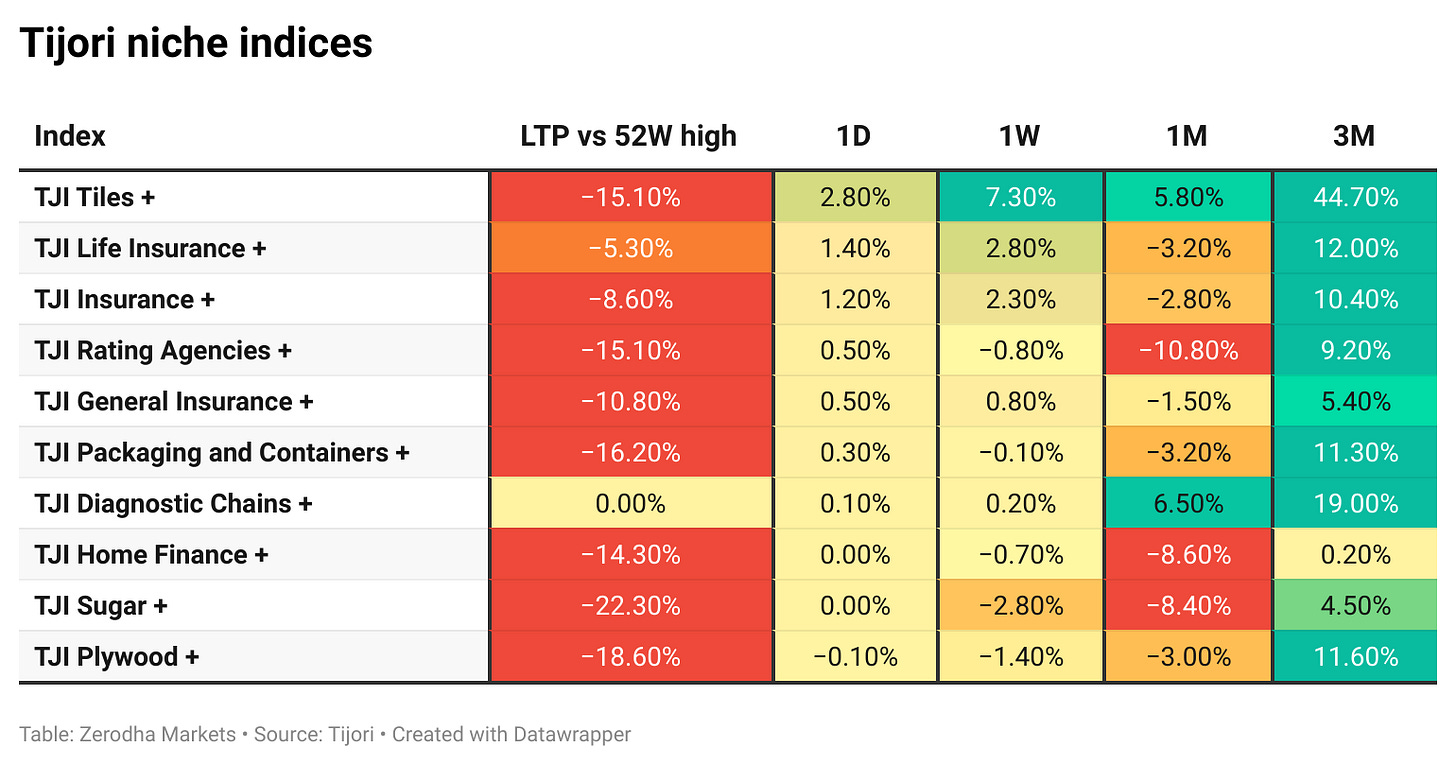 Tijori is an investment research platform, and they have constructed niche indices for various themes and sub-sectors. They help you understand the market performance of narrow slices of the market. You can also track the Promoter buying and other interesting stuff like Capex activity by the companies in the Tijori App’s idea dashboard