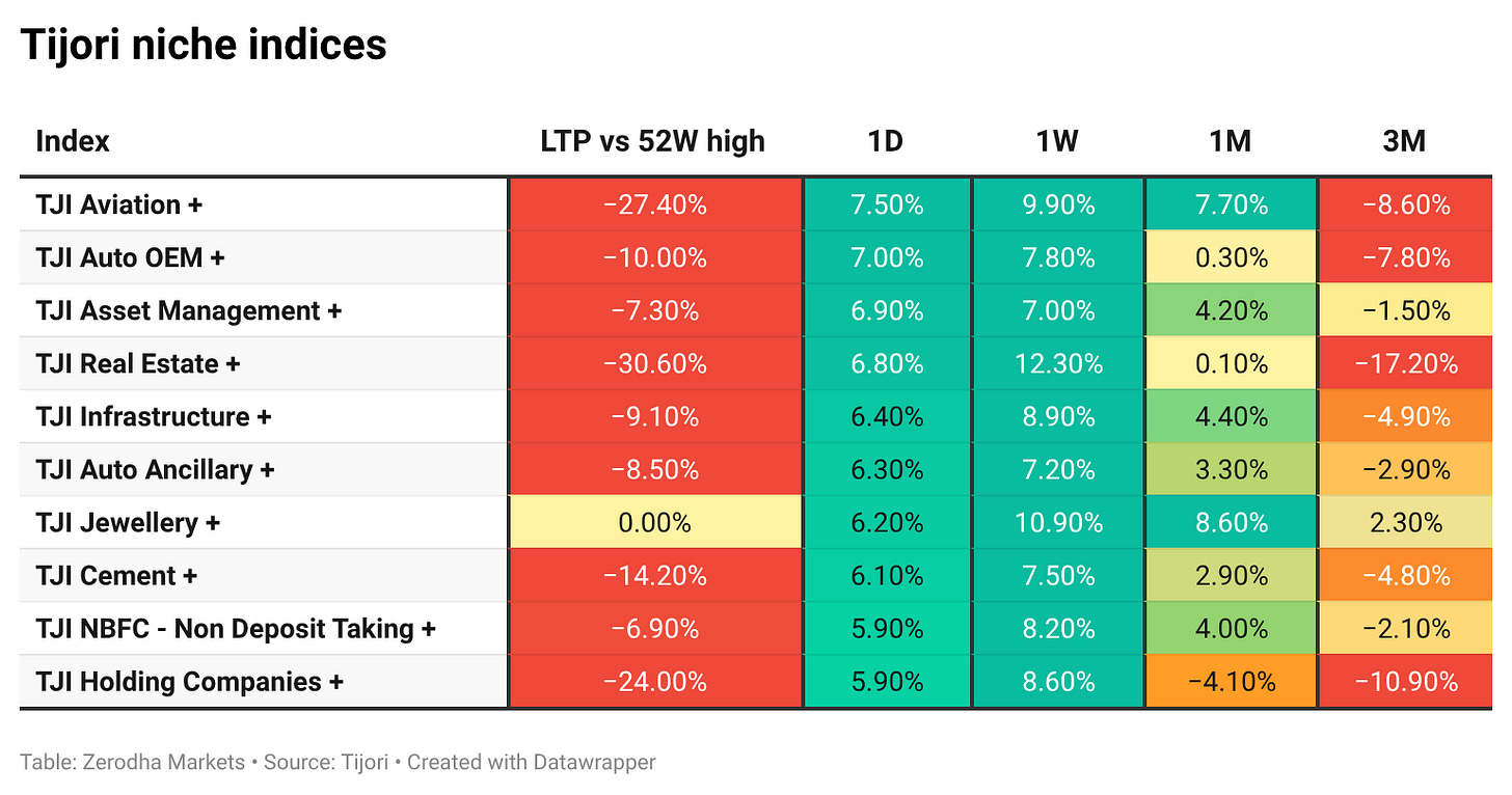 Tijori is an investment research platform that has constructed niche indices for various themes and sub-sectors. They help you understand the market performance of narrow slices of the market. You can also track the Promoter buying and other interesting stuff, like Capex activity by the companies in the Tijori App’s idea dashboard