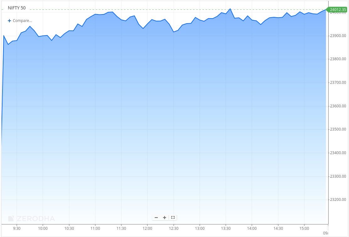 After an intraday cooldown to the 23,900 levels, the index largely consolidated in the second half near the highs, oscillating in a narrow range between 23,950 and 24,000. Despite minor pullbacks, the overall tone remained firm, with no significant selling pressure emerging.