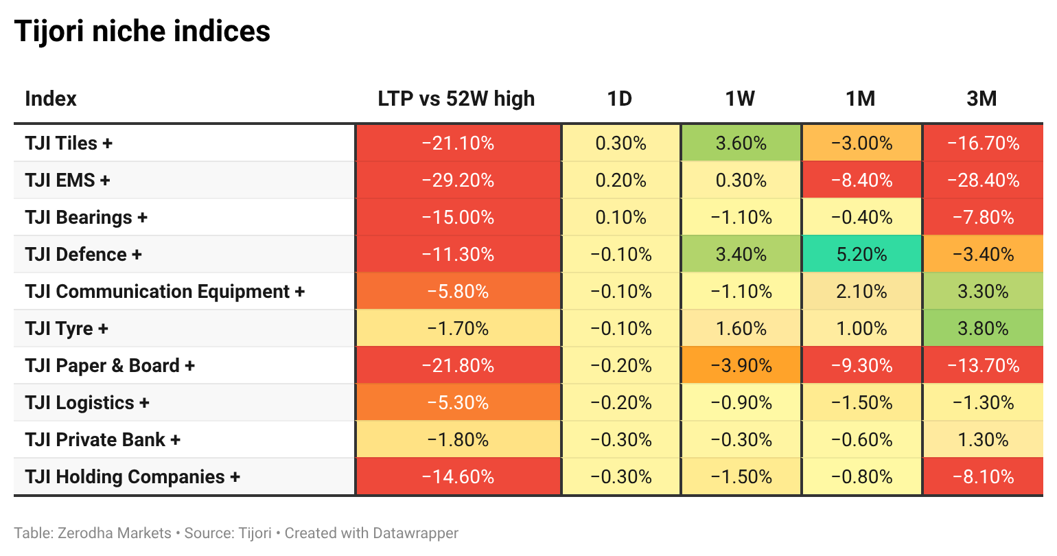 Tijori is an investment research platform that has constructed niche indices for various themes and sub-sectors. They help you understand the market performance of narrow slices of the market. You can also track the Promoter buying and other interesting stuff, like Capex activity by the companies in the Tijori App’s idea dashboard