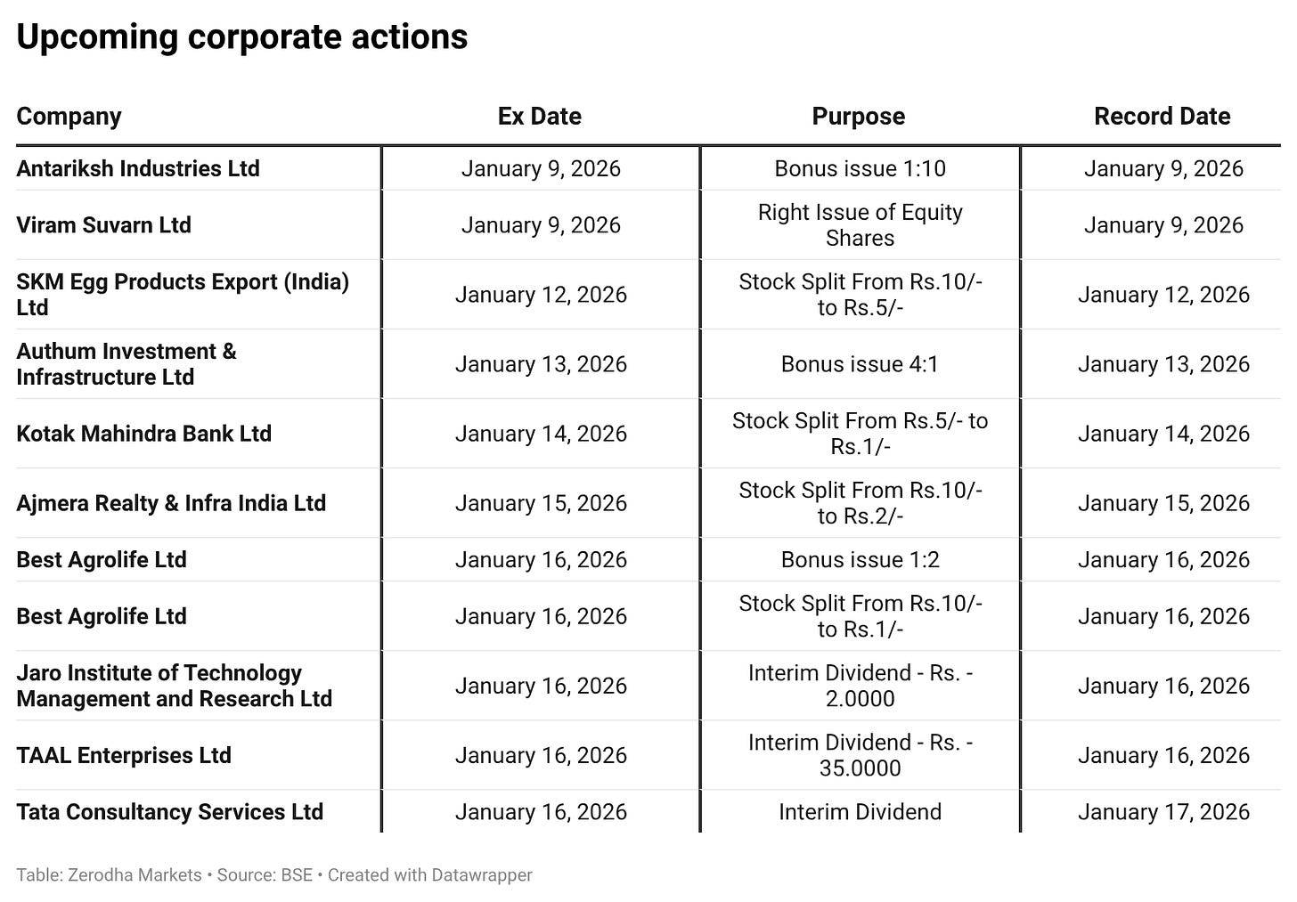 In the coming days, we have the following significant events, quarterly results, and corporate actions: