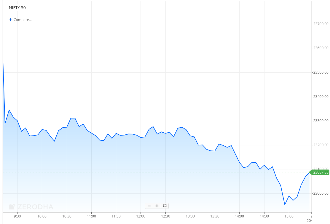 In the last hour, weakness intensified with Nifty breaking below the 23,100 mark and sliding toward the 22,930–22,950 zone around 3 PM before witnessing a sharp pullback.