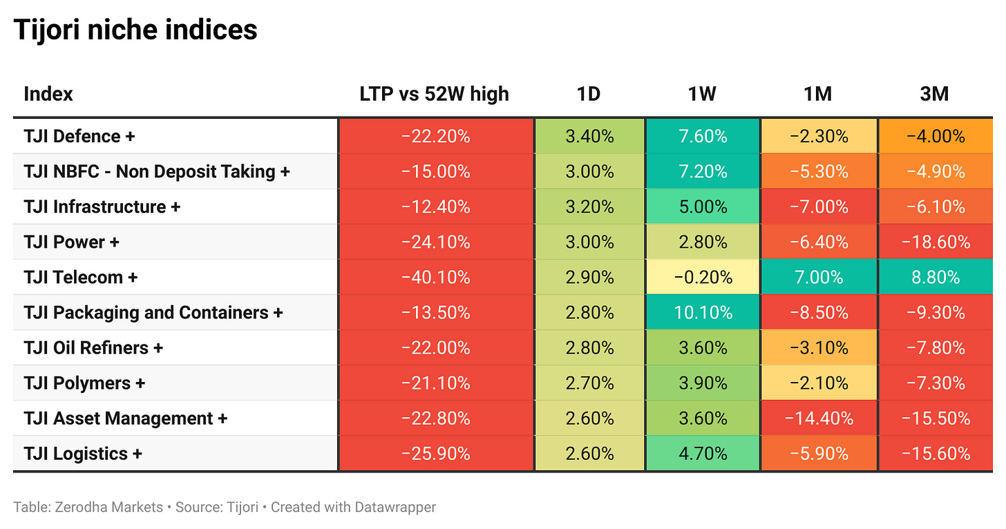 Tijori is an investment research platform, and they have constructed niche indices for various themes and sub-sectors. They help you get a sense of the market performance of narrow slices of the market. You can also track the Promoter buying and other interesting stuff like Capex activity by the companies in the Tijori App’s idea dashboard.