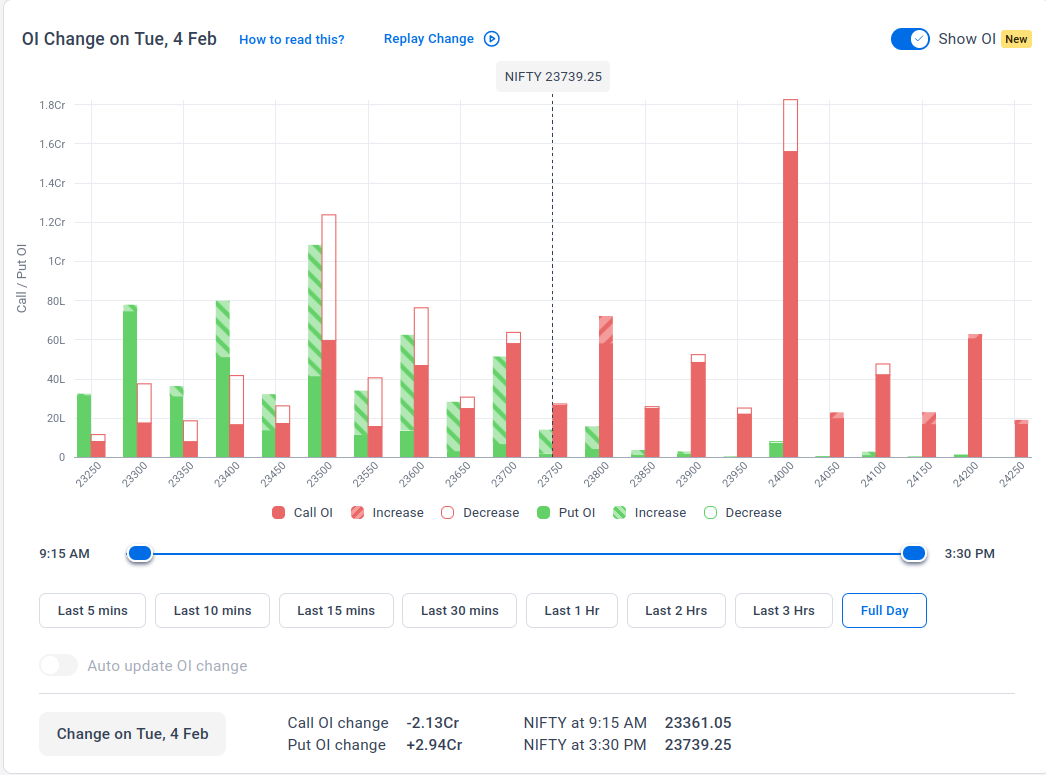 The maximum Call Open Interest (OI) is observed at 24,000, followed by 23,500. Meanwhile, The maximum Put Open Interest (OI) is at 23,500, followed by 23,400 and 23,300.