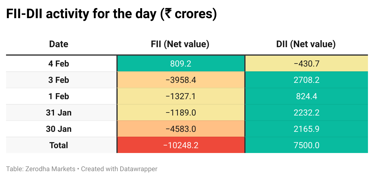 FII: Net inflow of ₹809.23 crore (Bought ₹18,105.75 crore, Sold ₹17,296.52 crore)
