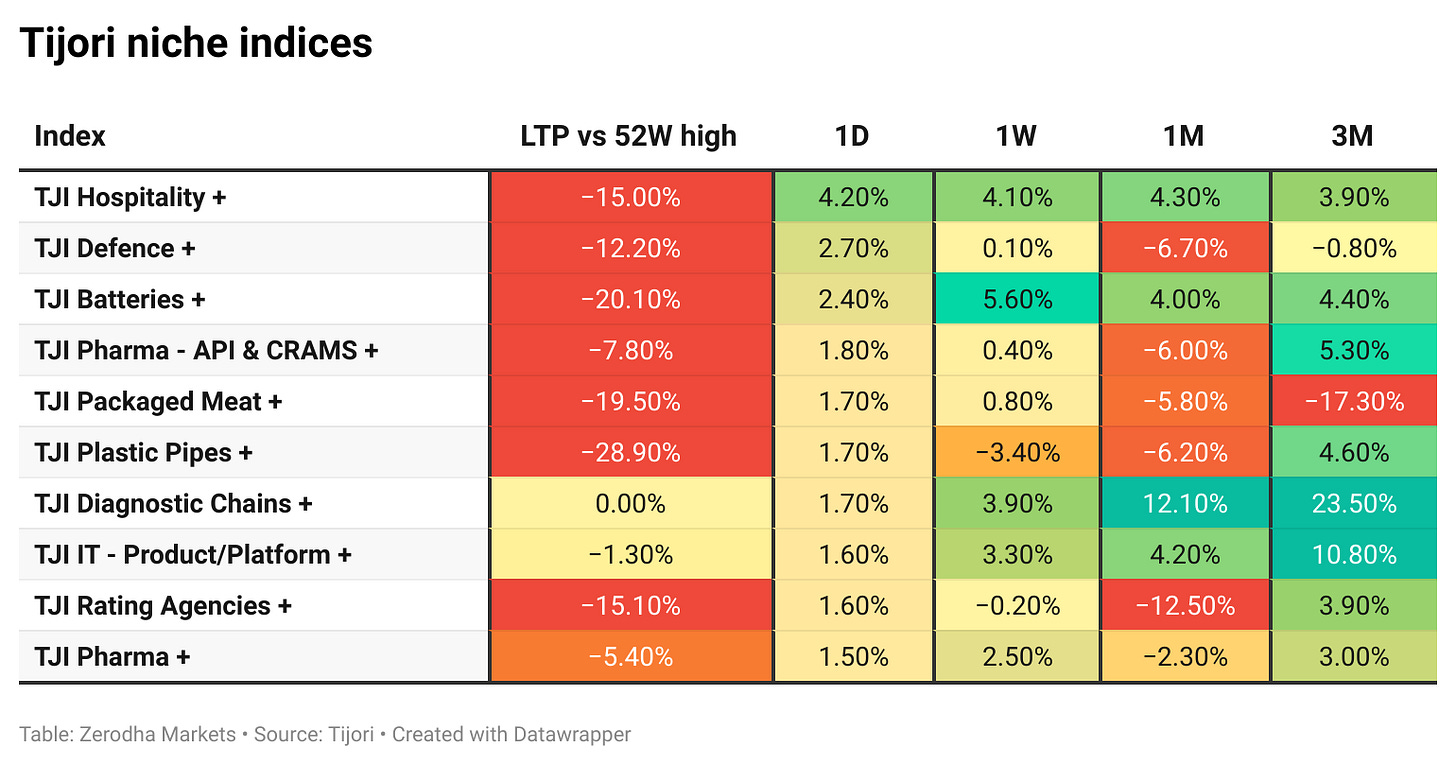 Tijori is an investment research platform, and they have constructed niche indices for various themes and sub-sectors. They help you understand the market performance of narrow slices of the market. You can also track the Promoter buying and other interesting stuff like Capex activity by the companies in the Tijori App’s idea dashboard