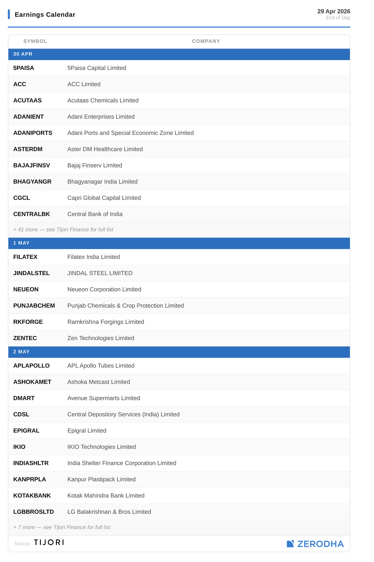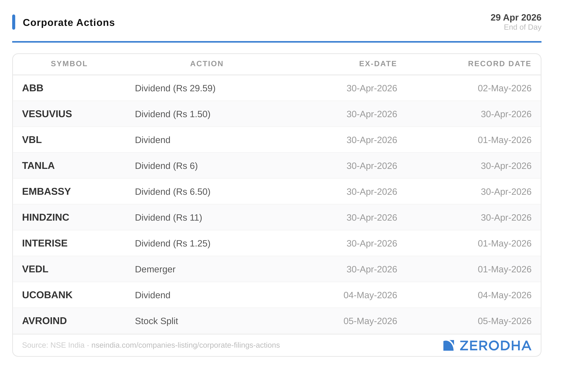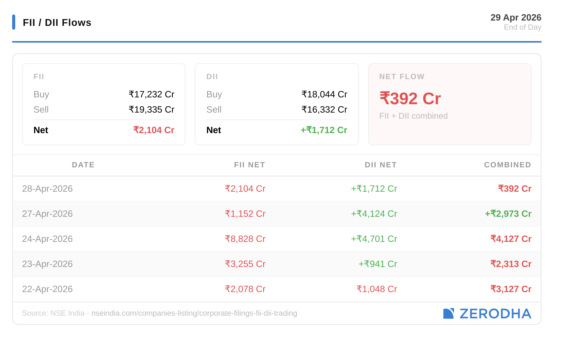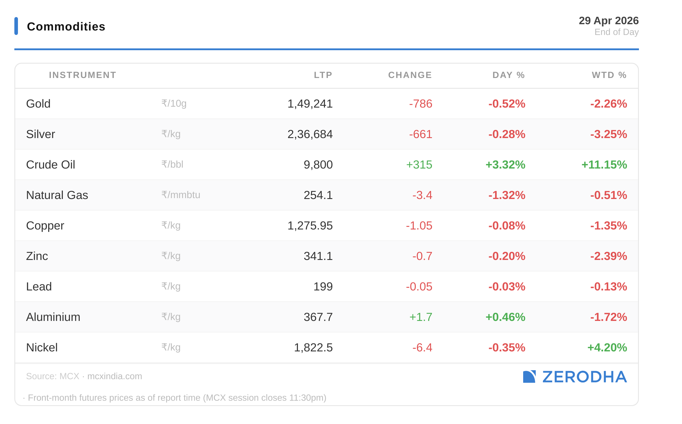 Published by Zerodha. Not investment advice. Data from NSE, BSE, MCX.
