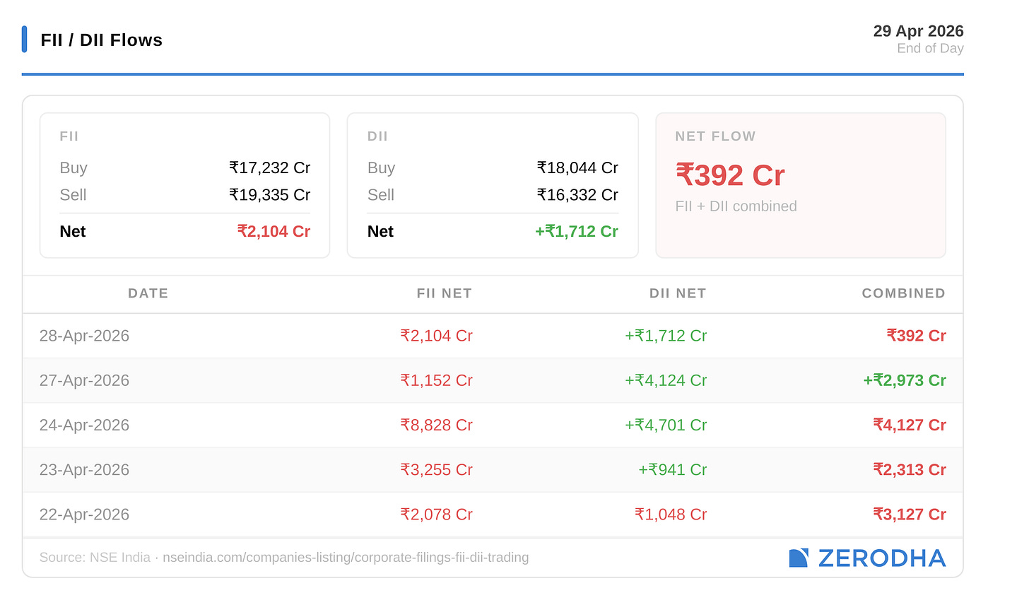Here’s the trend of FII-DII activity from the last 5 days: