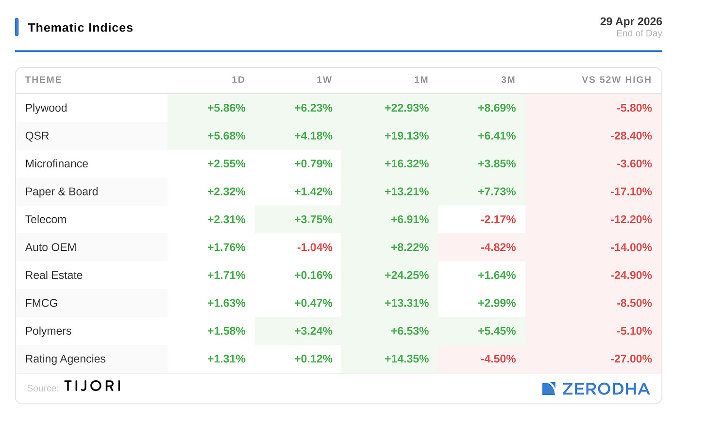 Tijori’s niche indices, where pockets of the market beyond standard sector baskets are sorted by today’s move. You can also track the Promoter buying and other interesting stuff, like Capex activity by the companies in the Tijori App’s idea dashboard