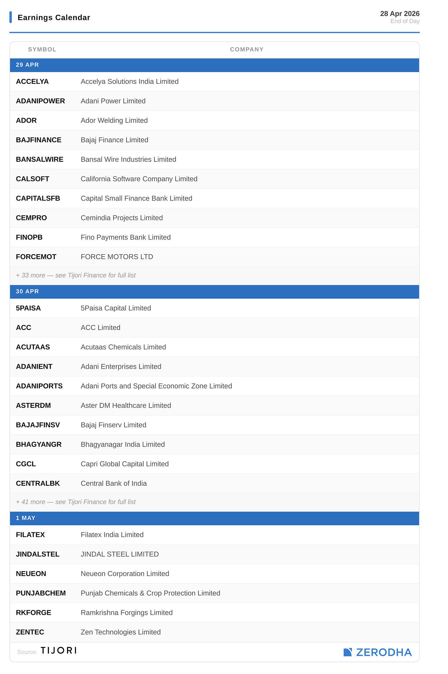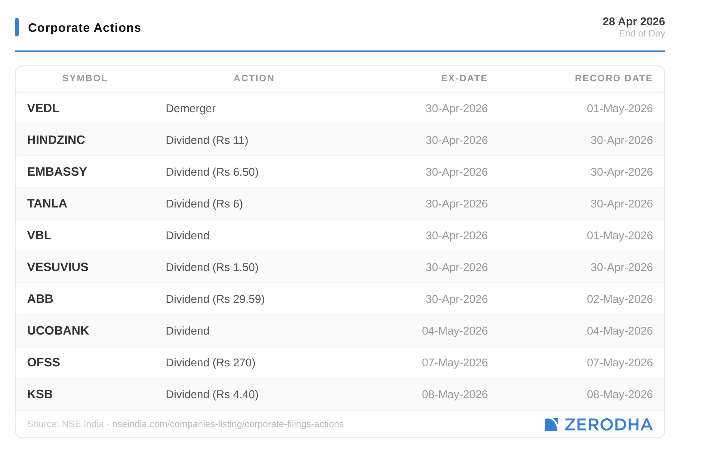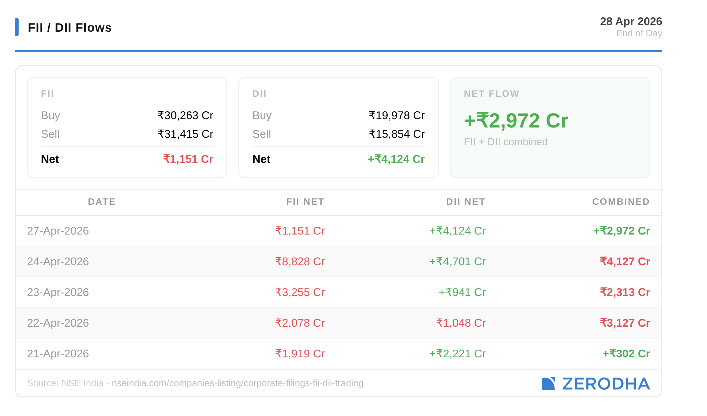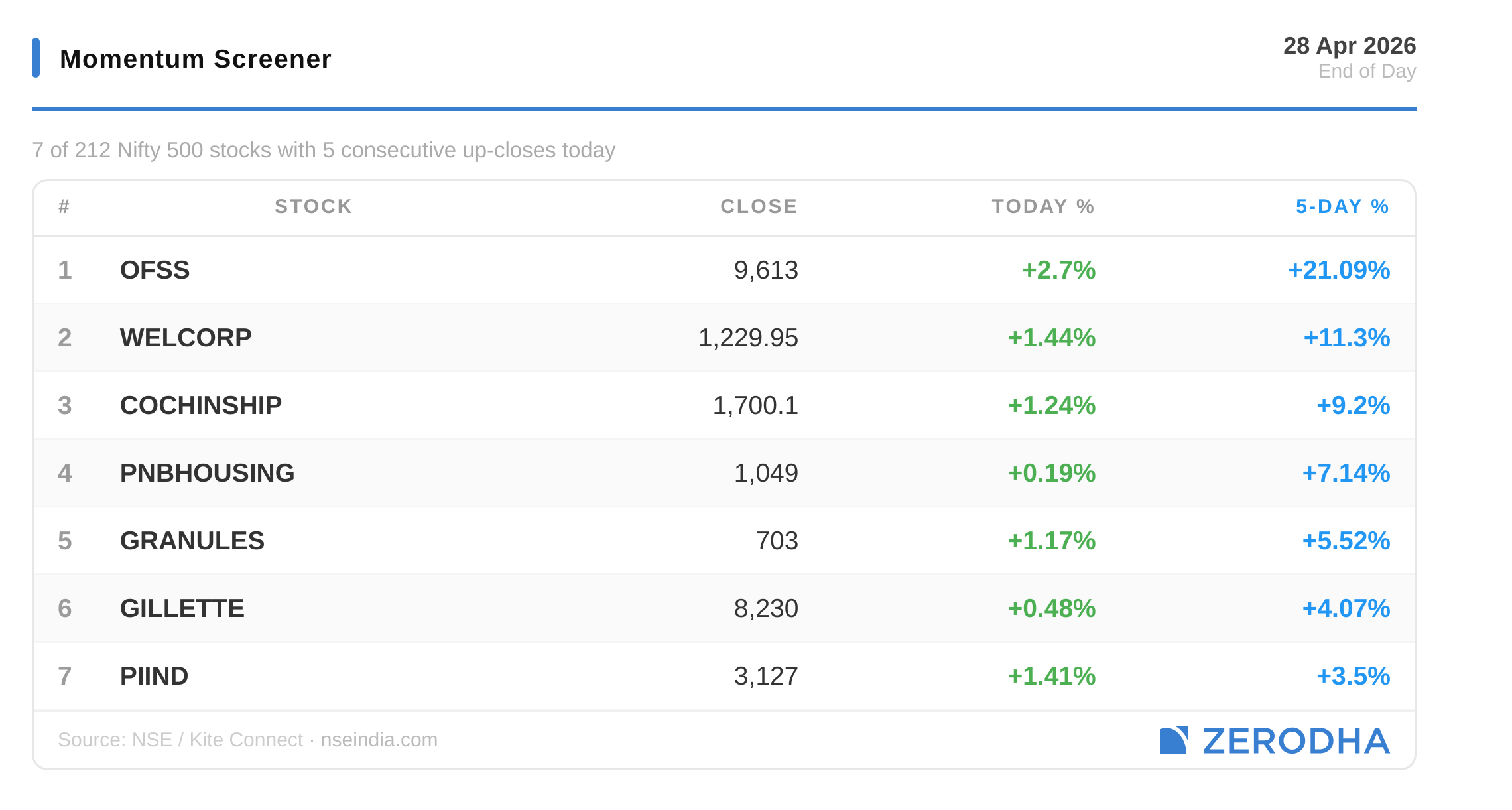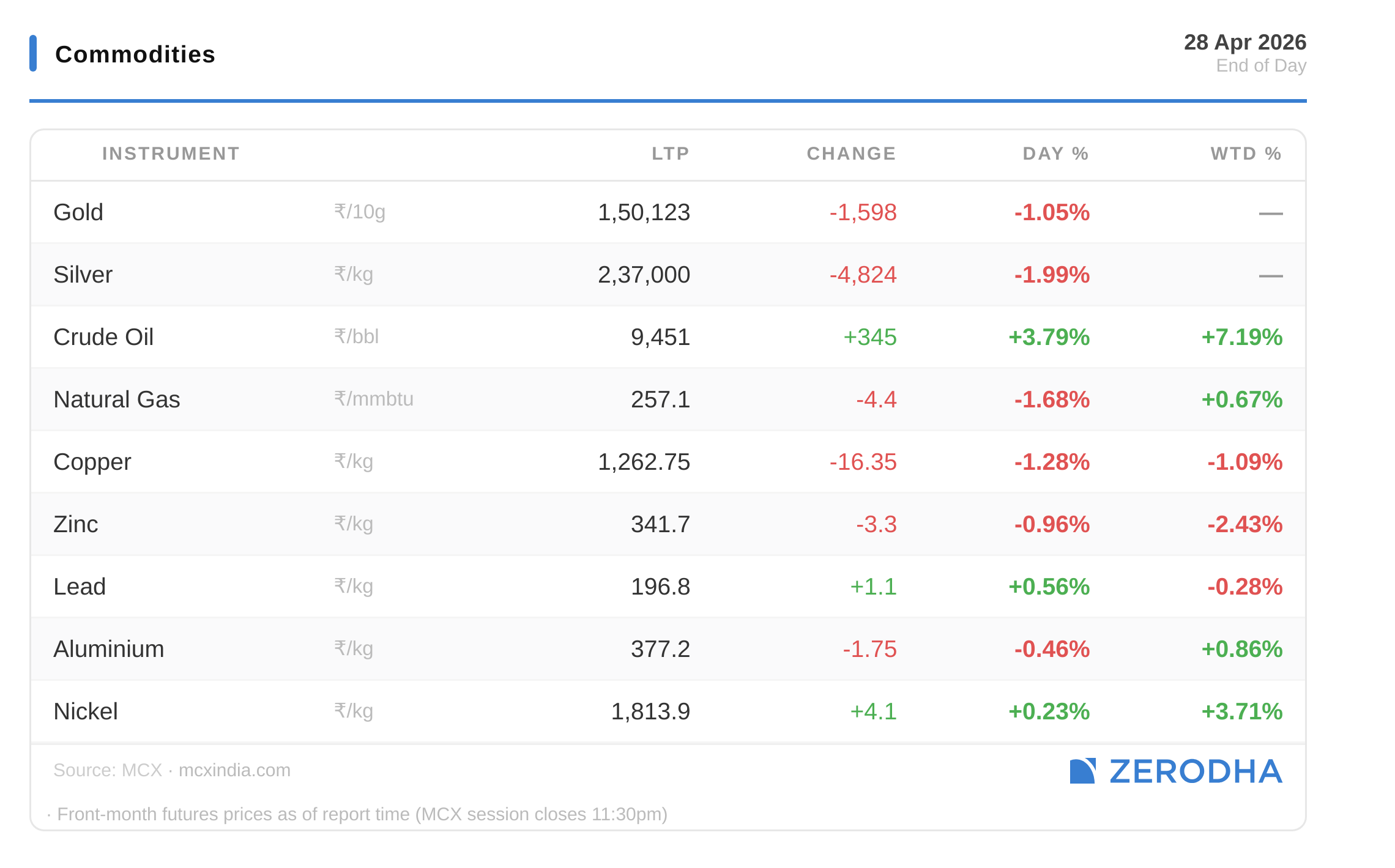 Published by Zerodha. Not investment advice. Data from NSE, BSE, MCX.