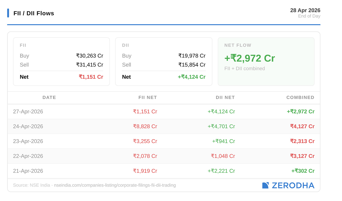 Here’s the trend of FII-DII activity from the last 5 days: