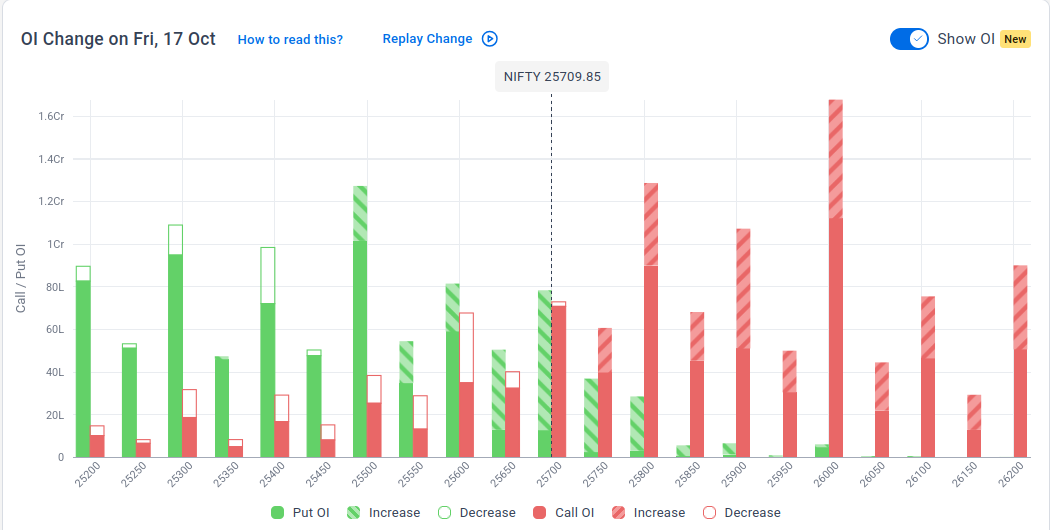 The maximum Call Open Interest (OI) is observed at 26,000, followed by 25,800, indicating potential resistance at the 25,800 -25,900 levels.