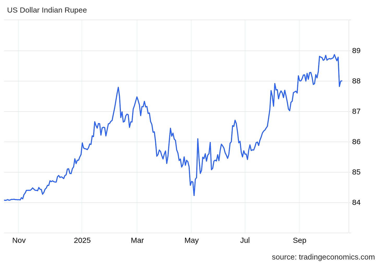 The Indian rupee traded around 88 per USD, near four-week highs, supported by RBI’s intervention through dollar sales and offshore forward positions, which curbed volatility and short-selling pressure. Dive deeper