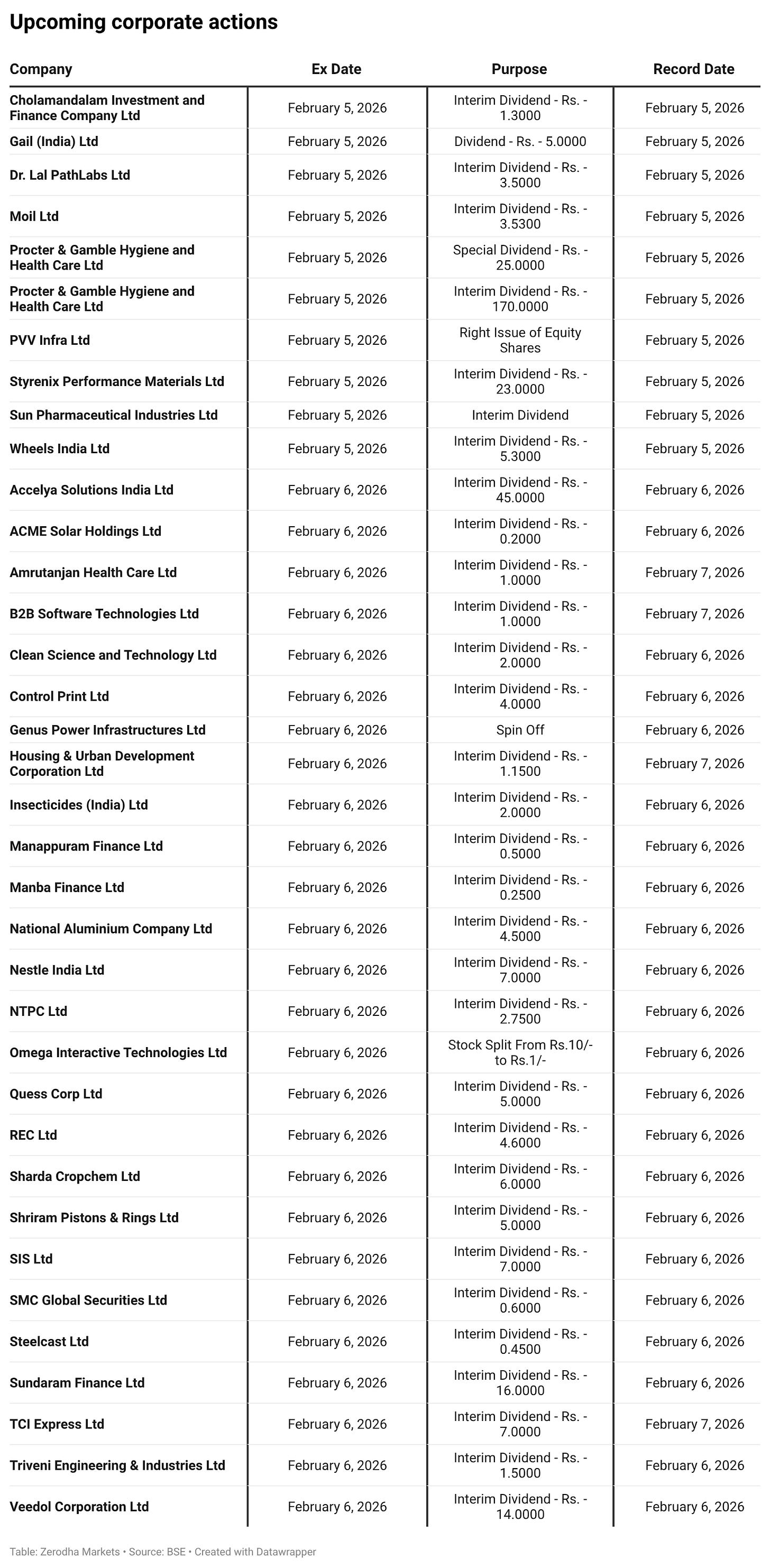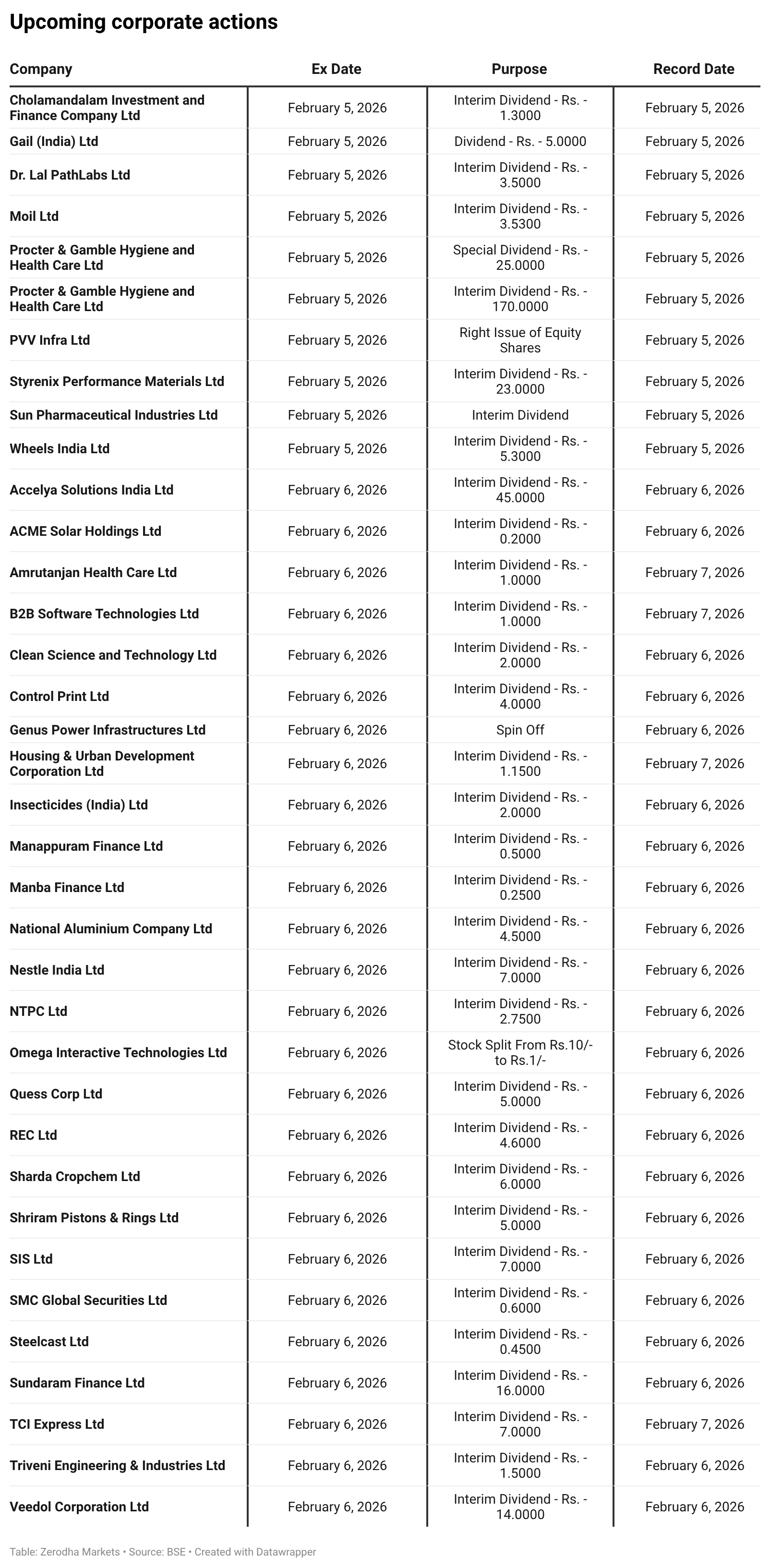 In the coming days, we have the following significant events, quarterly results, and corporate actions: