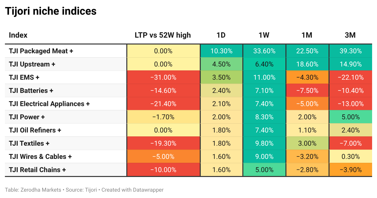 Tijori is an investment research platform that has constructed niche indices for various themes and sub-sectors. They help you understand the market performance of narrow slices of the market. You can also track the Promoter buying and other interesting stuff, like Capex activity by the companies in the Tijori App’s idea dashboard