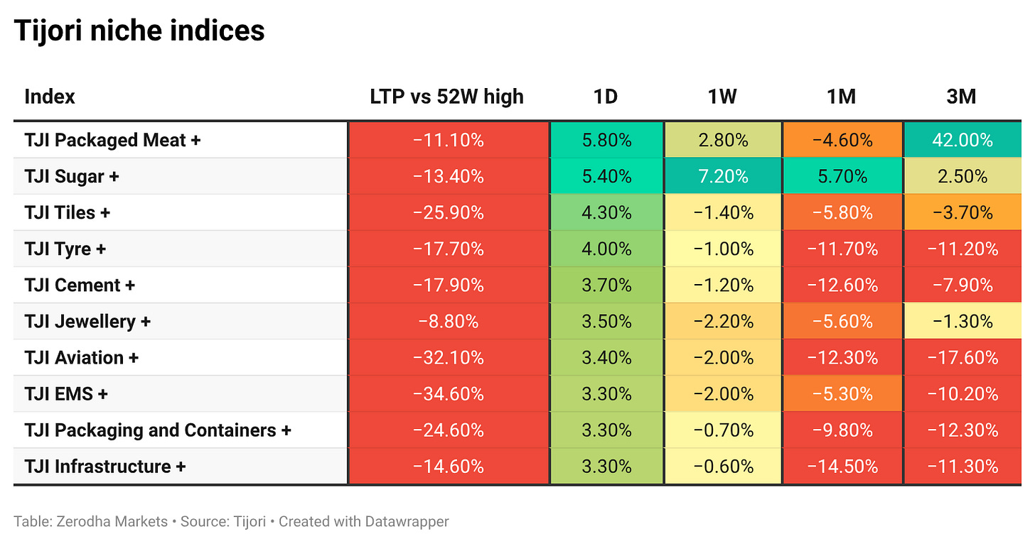 Tijori is an investment research platform that has constructed niche indices for various themes and sub-sectors. They help you understand the market performance of narrow slices of the market. You can also track the Promoter buying and other interesting stuff, like Capex activity by the companies in the Tijori App’s idea dashboard