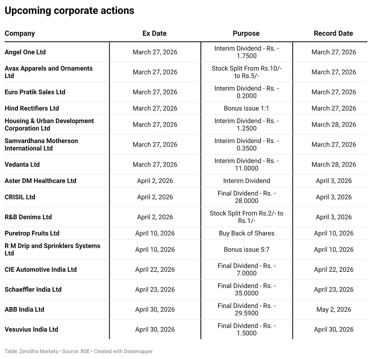 In the coming days, we have the following significant events and corporate actions: