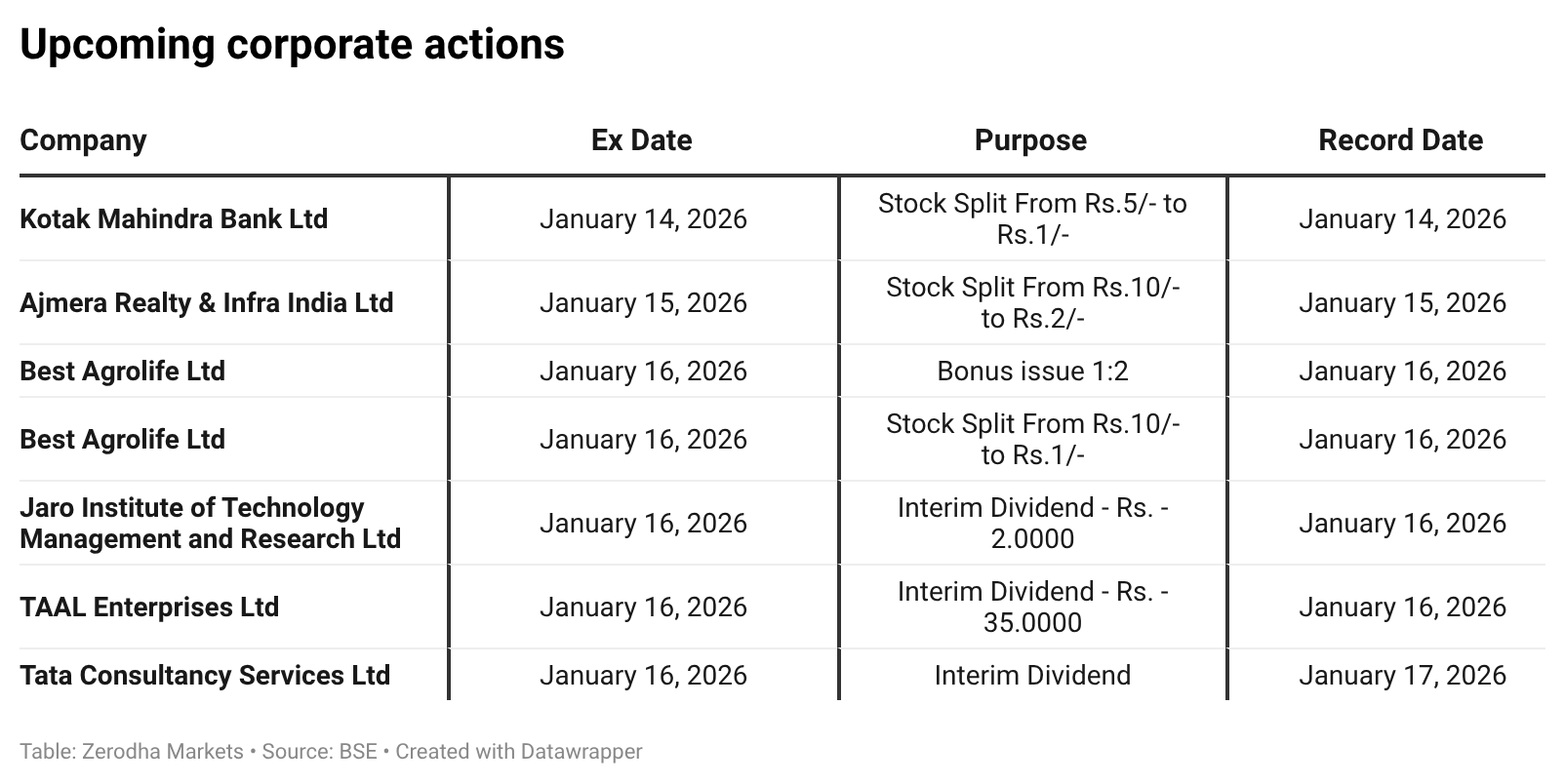 In the coming days, we have the following significant events, quarterly results, and corporate actions: