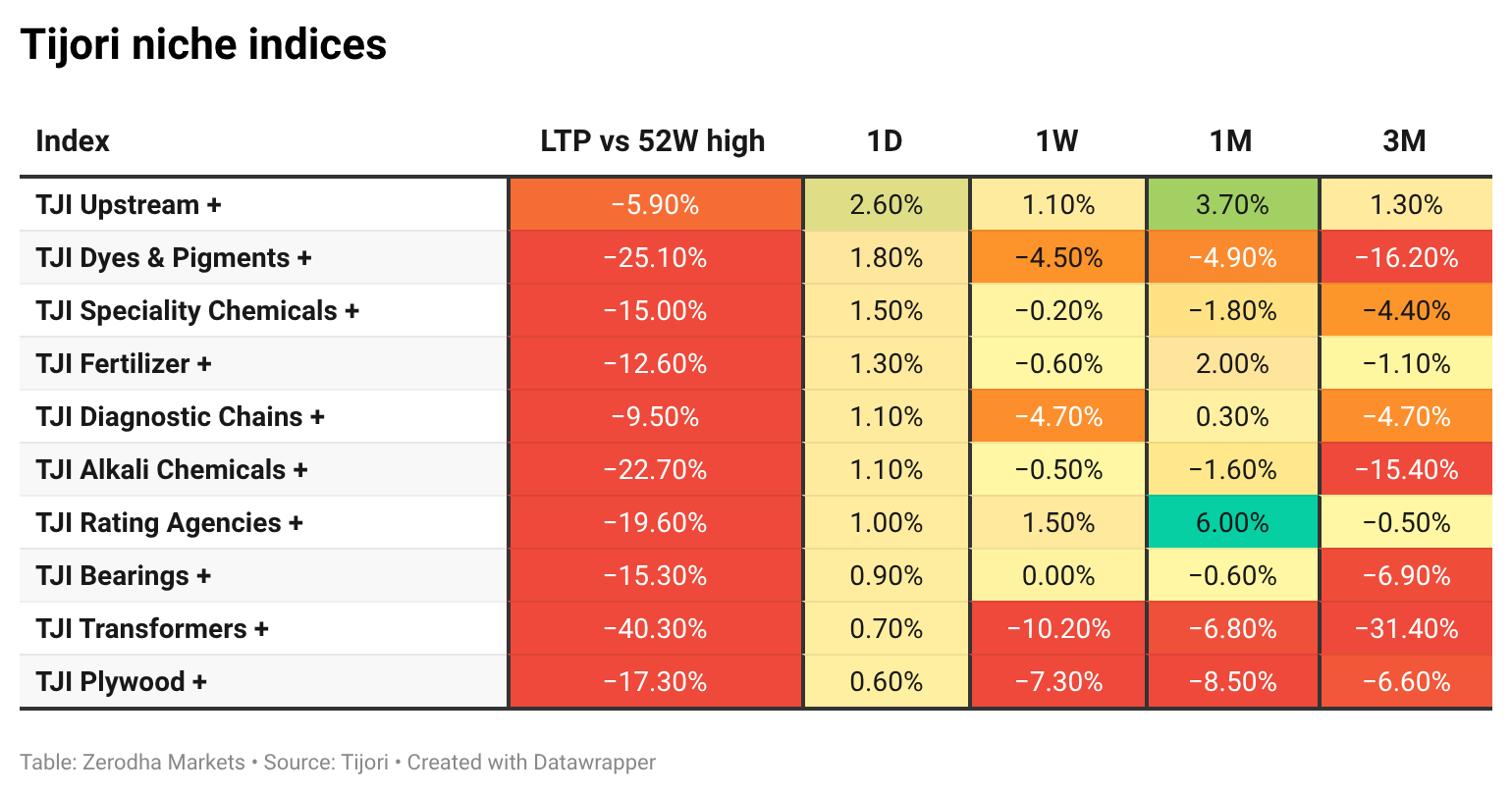 Tijori is an investment research platform that has constructed niche indices for various themes and sub-sectors. They help you understand the market performance of narrow slices of the market. You can also track the Promoter buying and other interesting stuff, like Capex activity by the companies in the Tijori App’s idea dashboard