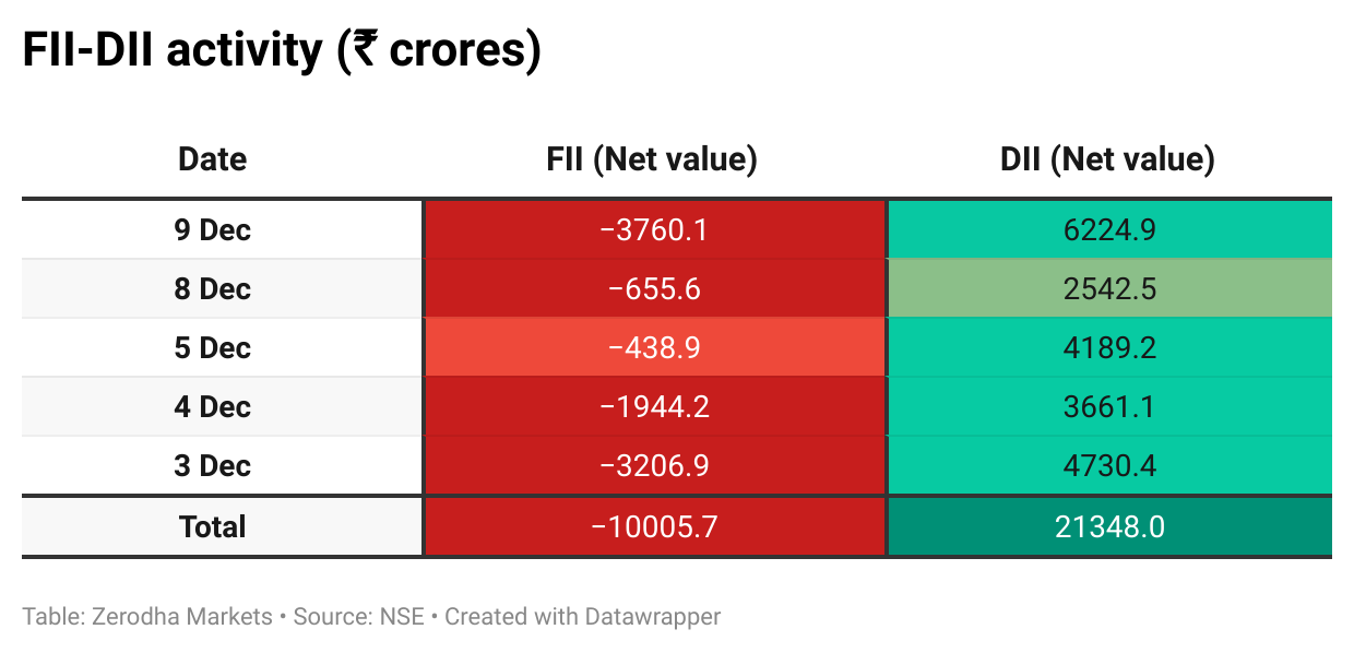 Here’s the trend of FII-DII activity from the last 5 days: