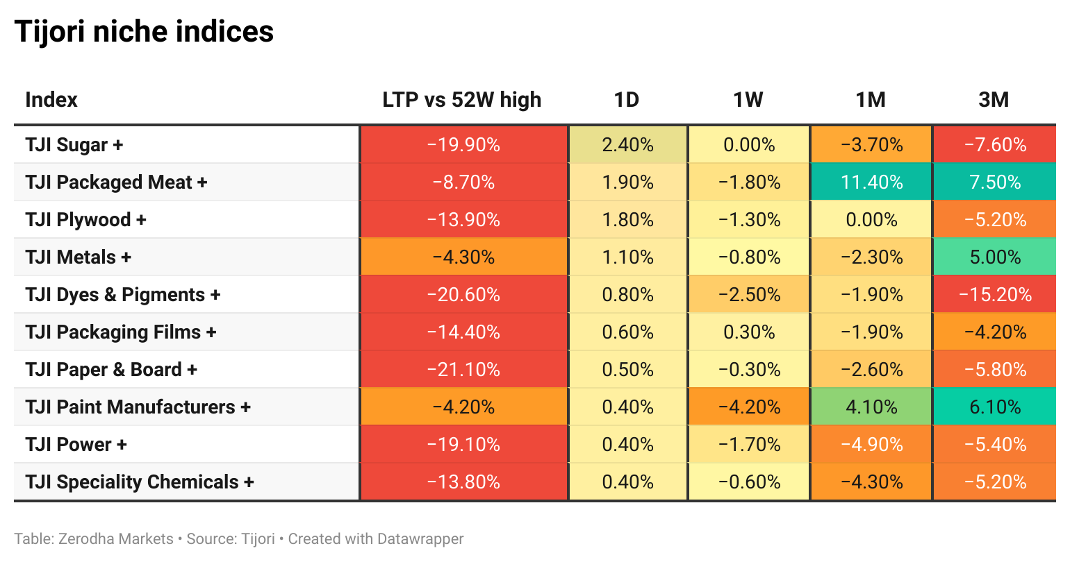 Tijori is an investment research platform, and they have constructed niche indices for various themes and sub-sectors. They help you understand the market performance of narrow slices of the market. You can also track the Promoter buying and other interesting stuff, like Capex activity by the companies in the Tijori App’s idea dashboard